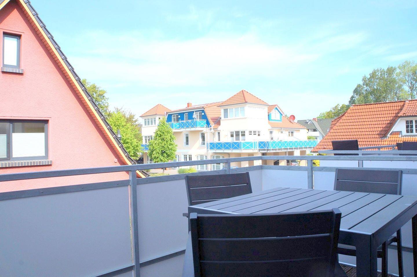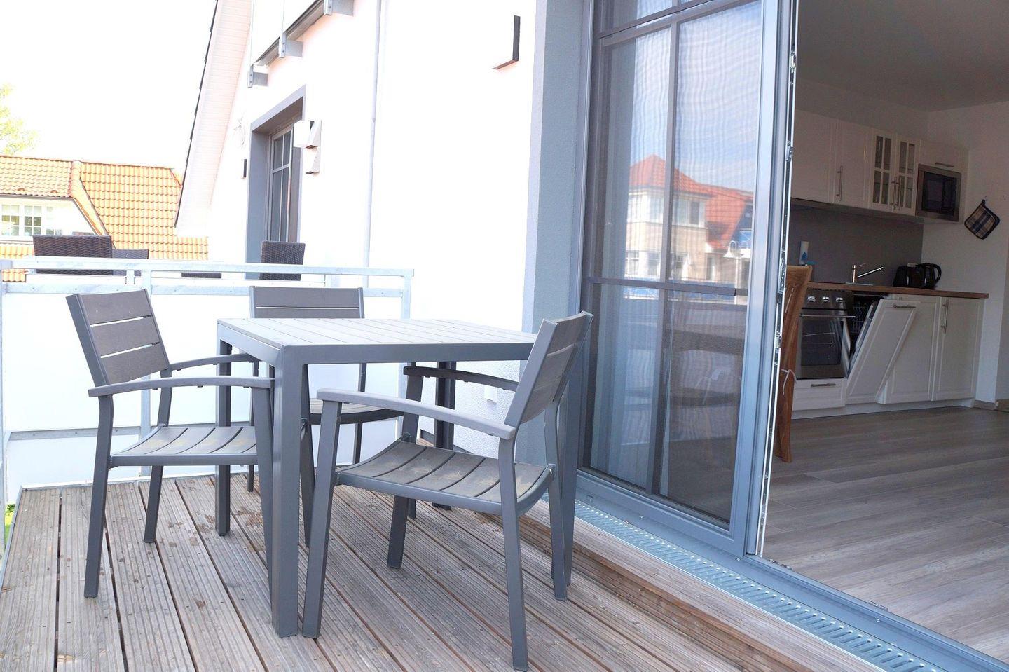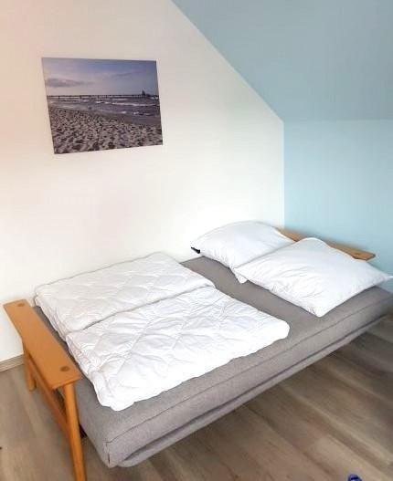 Neue hochwertige eingerichtete 50m² Ferienwohnung für 2-4 Personen in der 1.Etage eines Mehrfamilienhauses, Baujahr 2016, zentral-gute Lage, im Ortskern und nur 500m zum Strand, 600m zum Bodden. Helles einladendes Wohnzimmer mit kompl. Küchenzeile, Schlafcouch als Aufbettung im Wohnzimmer für die 3 und 4 Person und TV, Balkon mit Balkonmöbeln, Insektenschutz, Schlafzimmer mit Doppelbett und TV, Bad Dusche/WC, Fußbodenheizung, Fahrradabstellraum und PKW Stellplatz stehen am Haus zur Verfügung.