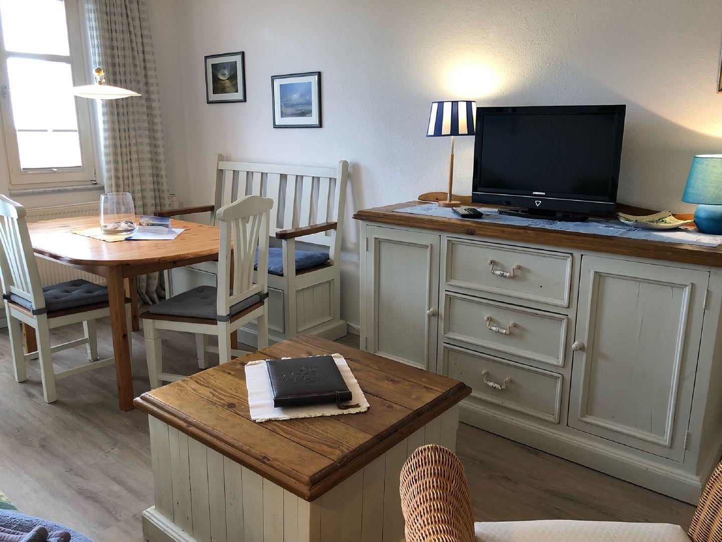 Die in exzellenter Boddenlage in Hochparterre befindliche 56 m² große Wohnung hat 1 Schlafzimmer, ein Wohnzimmer mit Wohn-Schlafsofa + Schlafsessel,