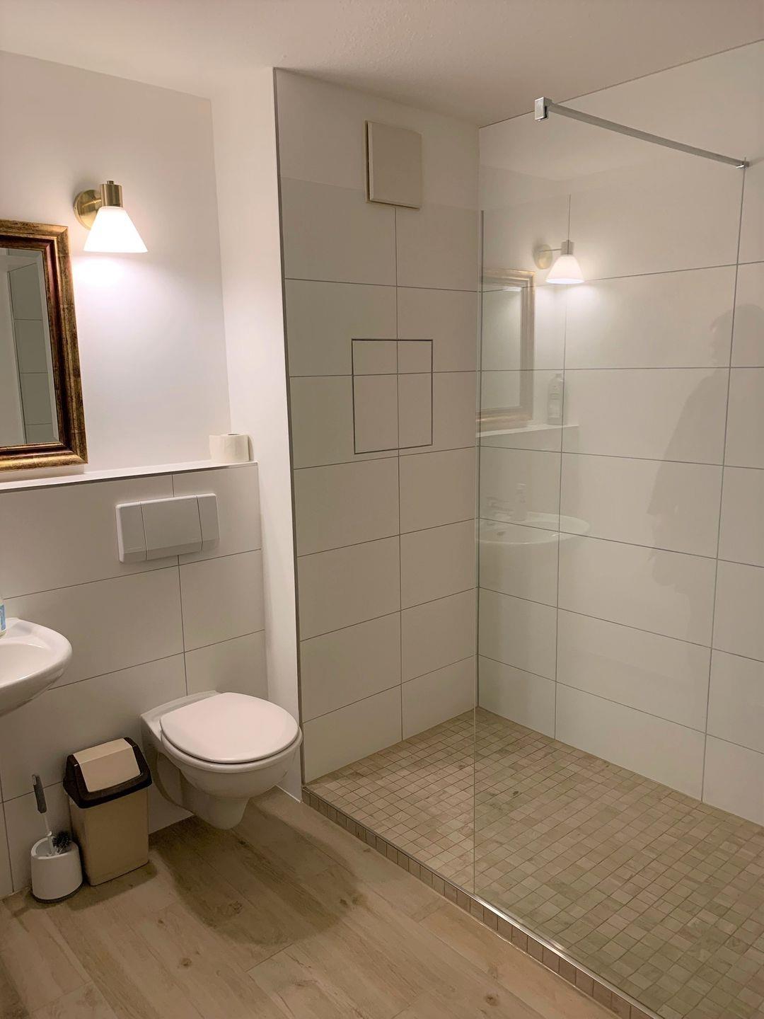 Vom separaten Flur gelangen sie in ein Bad mit Dusche und WC.