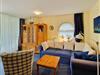 Wohnbereich mit kleinem Fernseher, dezent im Schrank versteckt