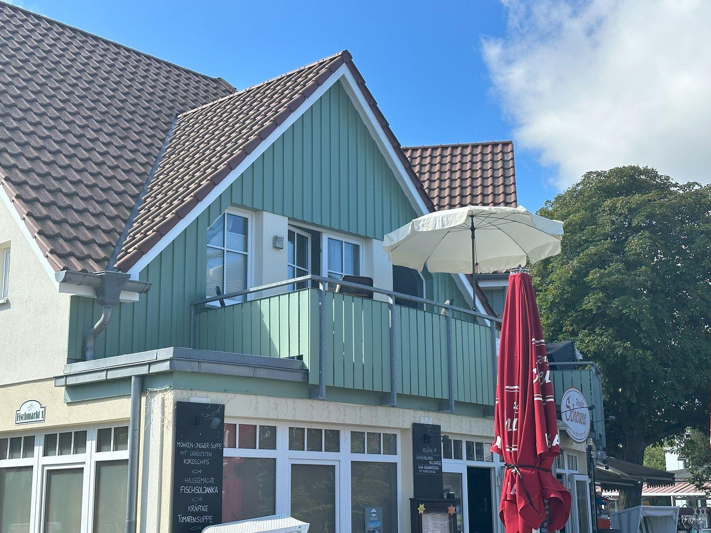 liebevoll maritim und hochwertig eingerichtete 43 m² Nichtraucher-Ferienwohnung für 2-3 Personen mit Wohnzimmer, voll ausgestatteter Küchenzeile, Schlafzimmer mit Boxspringbett, Schlafcouch, Bad, Westbalkon, Fahrradabstellraum und PKW-Stellplatz direkt im Zentrum von Zingst und nur 300m vom wunderschönen Strand entfernt