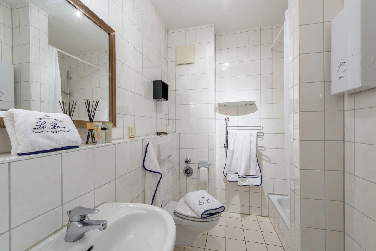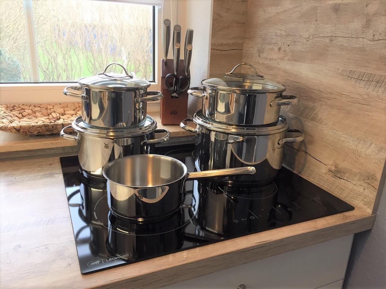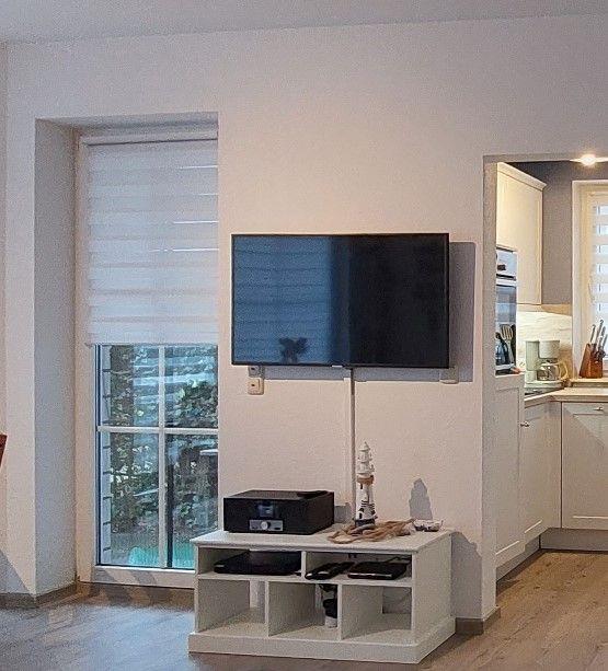 Ein geräumiges Wohnzimmer mit gemütlichem Sofa, ein großer Flachbild SMART TV mit MagentaTV Smart und RTL+ Premium inklusive (zusätzlich können Sie sich über Ihren Zugang bei Netflix, Amazon Prime, etc. anmelden) und einem Blu-ray-Player, eine kleine hochwertig ausgestattete Küche mit Geschirrspüler, Kühlschrank m. Gefrierfach, Ceranfeld und Einbaubackofen, ein helles modernes Badezimmer mit großer Dusche, ein Schlafzimmer mit Doppelbett und Einbauschrank und ein weiteres Schlaf- oder Kinderzimmer mit einem Tagesbett, welches auf ein Doppelbettmaß von 160 x 200 cm ausgezogen werden kann. Ein Kinder Reisebett ist ebenfalls vorhanden.