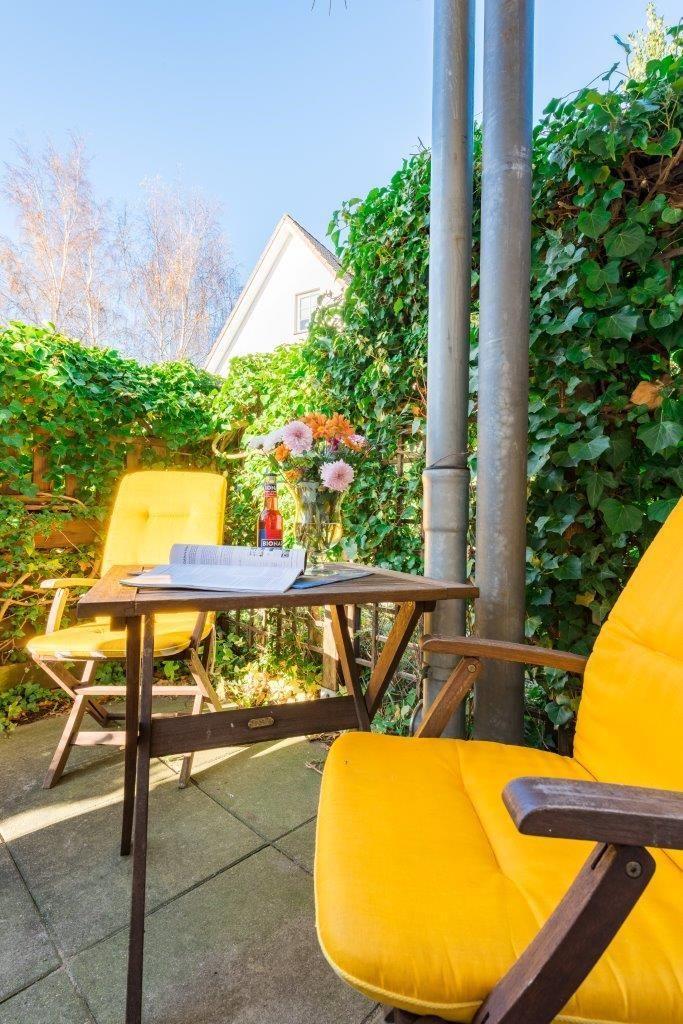 Es empfängt Sie eine liebevoll eingerichtete helle Ferienwohnung im Erdgeschoss mit eigenem kostenlosen PKW Stellplatz (Nr. 09) und eine kleine, nach Westen ausgerichtete, teilweise überdachte Terrasse, wo der Tag mit einem Mahl in der Abendsonne enden kann.