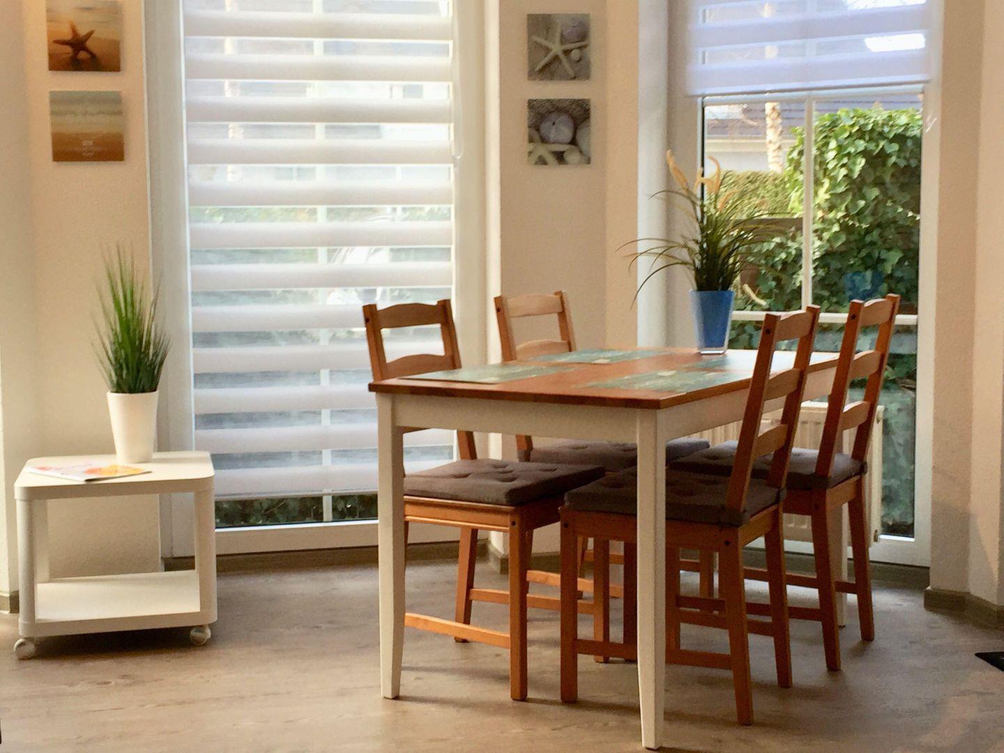 Es empfängt Sie eine liebevoll eingerichtete helle Ferienwohnung im Erdgeschoss mit eigenem kostenlosen PKW Stellplatz (Nr. 09) und eine kleine, nach Westen ausgerichtete, teilweise überdachte Terrasse, wo der Tag mit einem Mahl in der Abendsonne enden kann. In Ihrer ca. 52 m² großen Ferienwohnung haben Sie zudem mit 4 Personen reichlich Platz