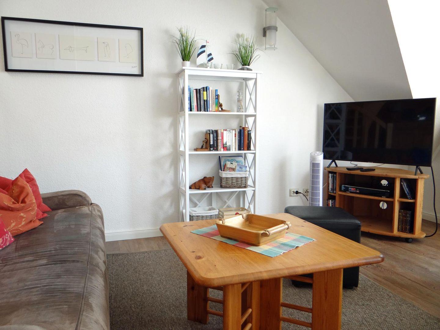 Gemütliche Ferienwohnung in einem Appartementhaus, ca.80 m², bis zum Strand sind es 250 m, OG, Balkon, Wohnzimmer mit kompletter Küchenzeile, 43Zoll Sat-TV, Blue-Ray Player, mit DAB-Radio, Xbox 360, Dusche/WC, 1 Schlafzimmer mit Ehebetten, 2. Obergesch. 1 Schlafzimmer mit Rollbett u. Schlafsofa (4Personen), Kinderbett mit Matratze und Hochstuhl inklusive,