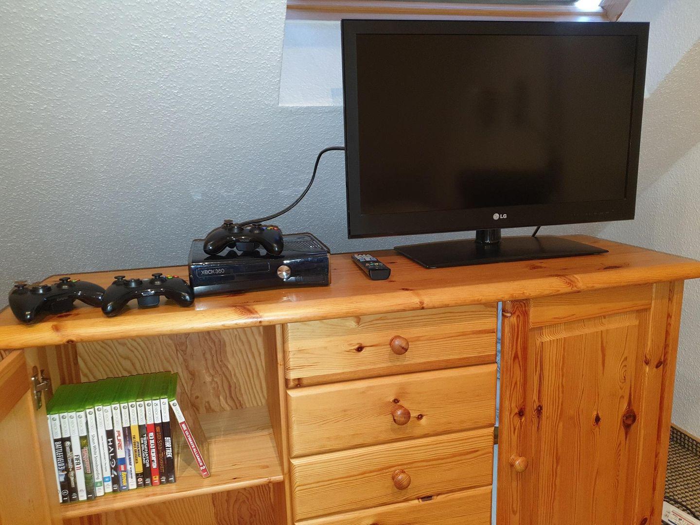 OG, Balkon, Wohnzimmer mit kompletter Küchenzeile, 43Zoll Sat-TV, Blue-Ray Player, mit DAB-Radio, Xbox 360, Dusche/WC,