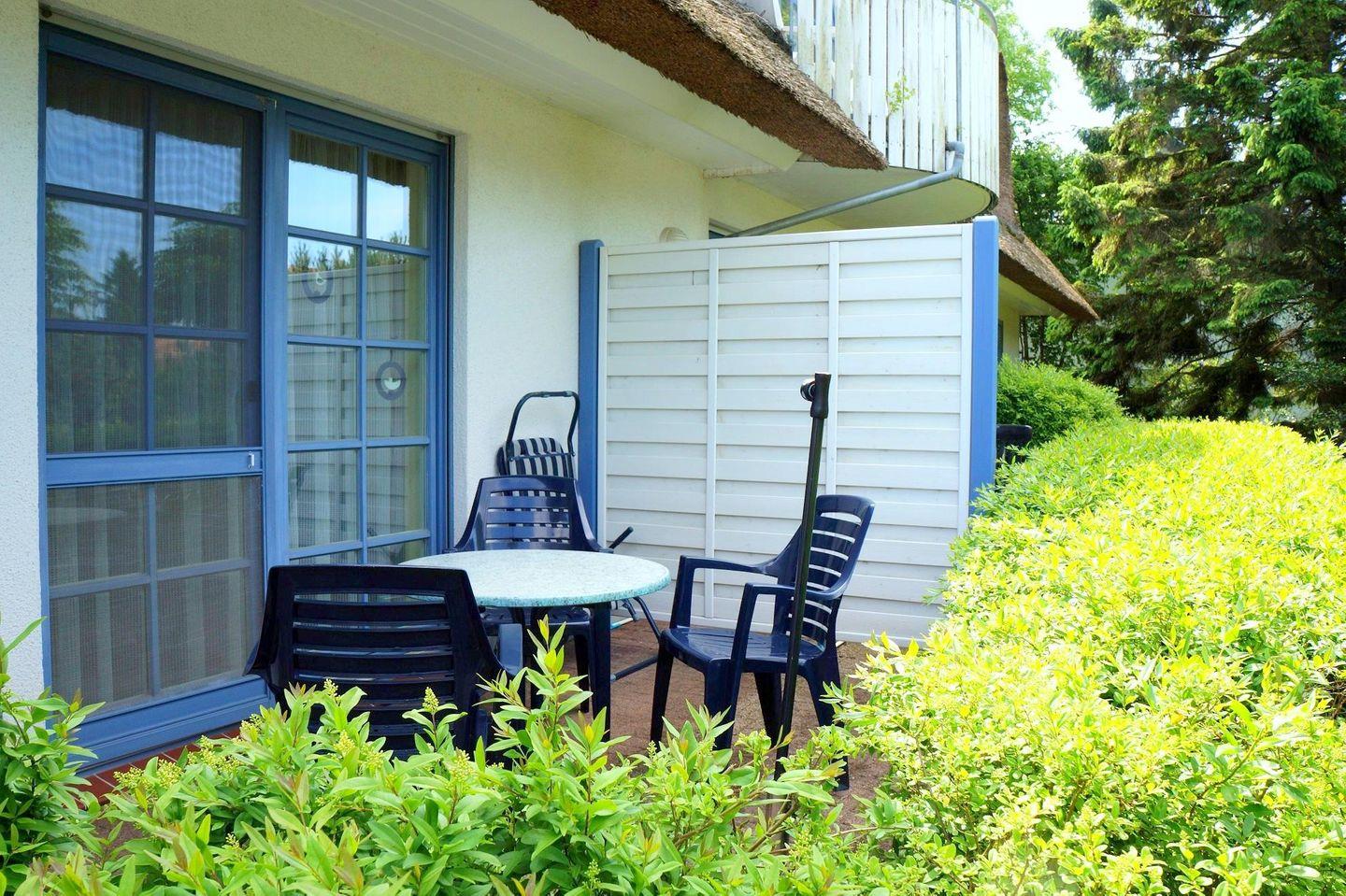 Eine große Terrasse mit Gartenmöbeln lädt dazu ein, die frische Ostseeluft zu genießen und die Seele baumeln zu lassen. Ob ein gutes Buch oder eine Tasse Kaffee – hier finden Sie den perfekten Ort, um abzuschalten.