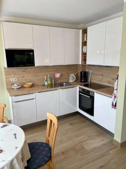 Die Wohnung verfügt über ein gemütliches Schlafzimmer, das Platz für bis zu drei Personen bietet. Der offene Wohnbereich ist hell und freundlich gestaltet und verbindet eine voll ausgestattete Küche mit einem einladenden Wohnzimmer. Hier können Sie gemeinsam kochen, entspannen und unvergessliche Momente erleben. Die Küche ist modern eingerichtet und bietet Ihnen alles, was Sie benötigen: Herd, Backofen, Mikrowelle, Geschirrspüler und eine Kaffeemaschine für den perfekten Start in den Tag.