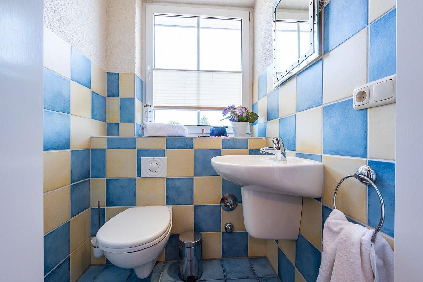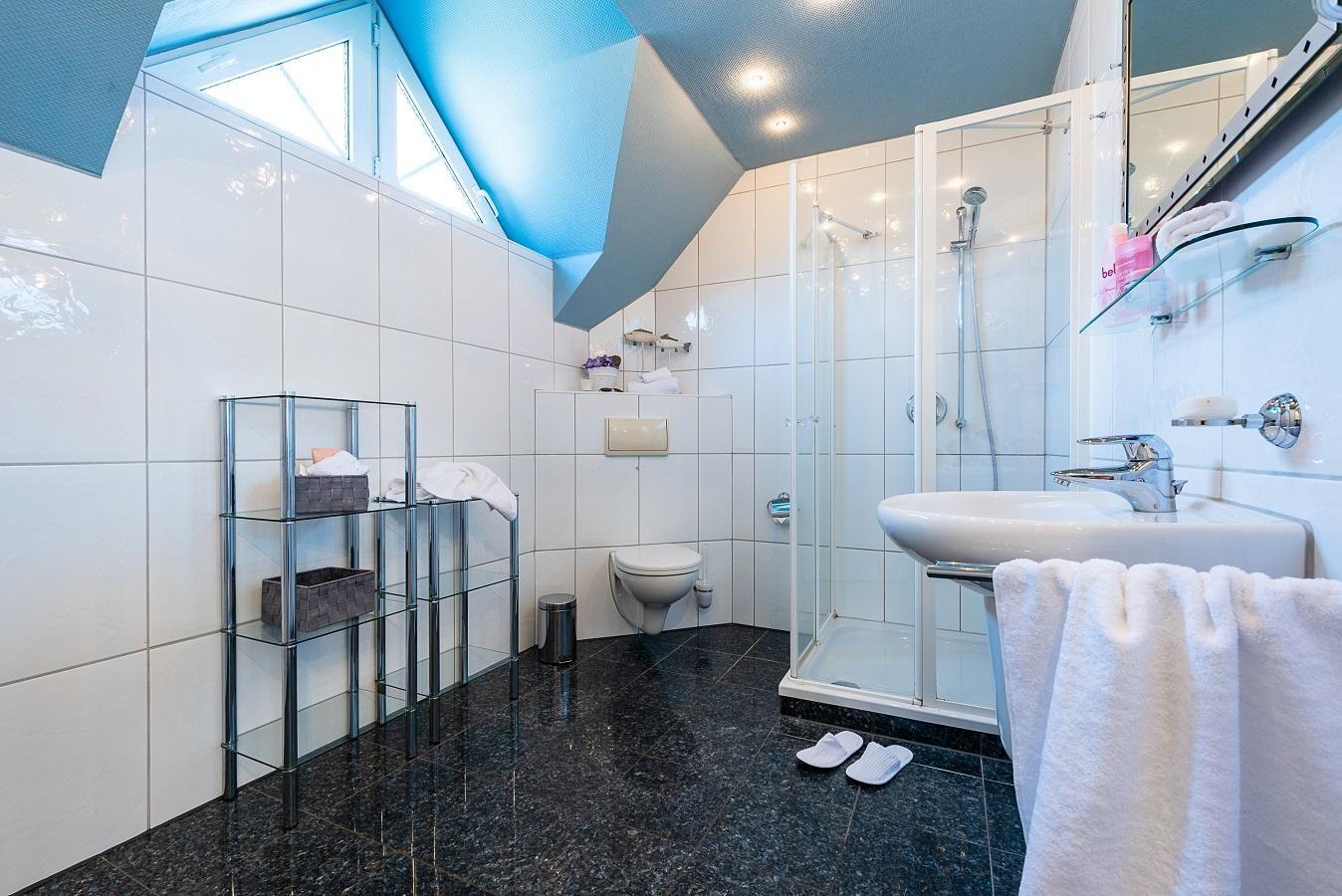 Ein Bad mit Dusche/WC und einem zusätzlichen Gäste-WC.