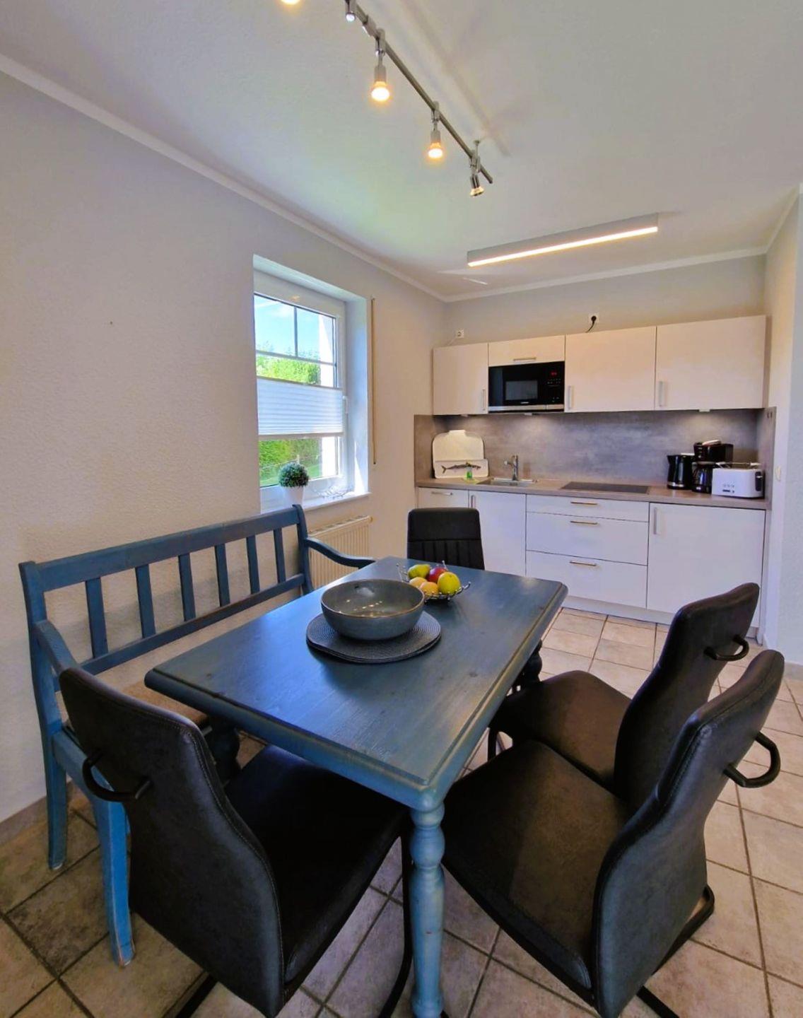 Gemütliche Ferienwohnung in einem Appartementhaus in Strandnähe, ca 56m², EG, Terrasse, 1 PKW-Stellplatz Nr. 19 befindet sich in der Anlage, Wohnzimmer mit Küchenzeile (ohne Backofen), ein Schlafsofa, Schlafzimmer mit Ehebett, Dusche/WC, Bettwäsche und Handtücher bitte mit bringen, SAT-TV, Radio, Fahrradabstellraum vorhanden. Der Strand ist ca.200 m entfernt.