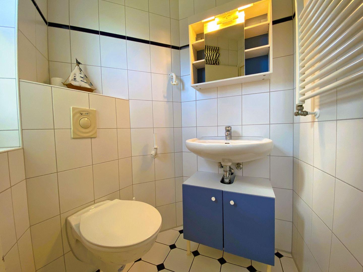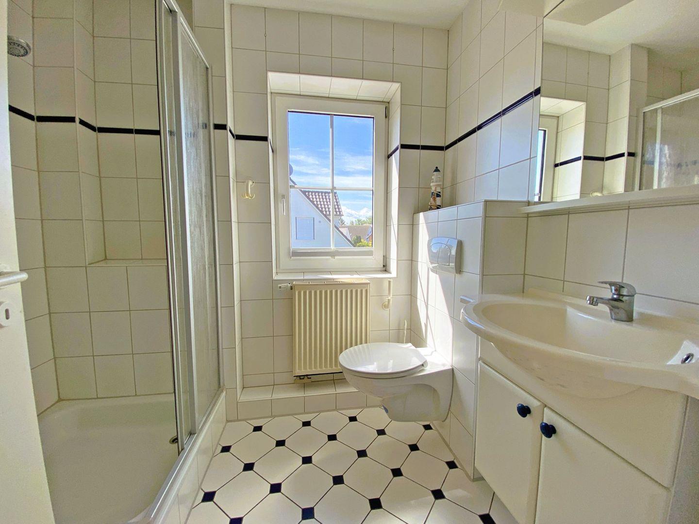 Neben der Gästetoilette im Erdgeschoß befindet sich im Obergeschoß ein geräumiges Duschbad mit Toilette und Waschmaschine.