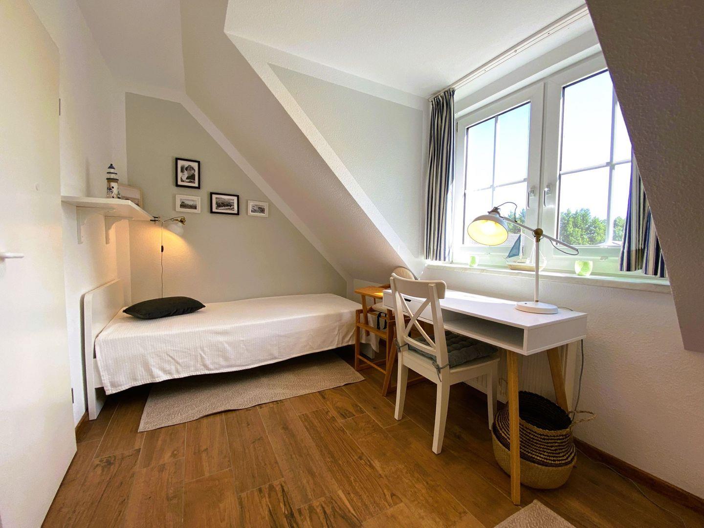 2 Schlafzimmer im 1. Stock (1x Ehebett; 1x 2 Einzelbetten) sowie ein Schlafzimmer im Dachgeschoß mit großem Einzelbett 140x200 cm bieten problemlos 6 Personen Platz.