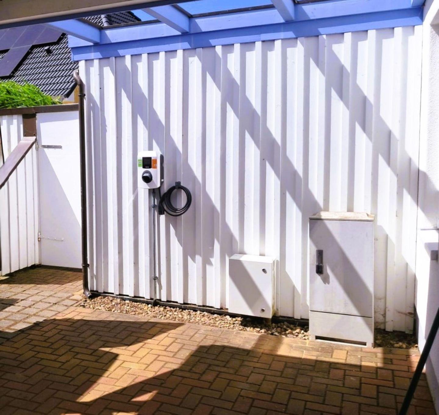 Carport mit angeschlossener Wallbox und der zusätzliche Stellplatz ersparen auch getrennt Anreisenden die lästige Parkplatzsuche und es gibt einen Fahrradabstellplatz.