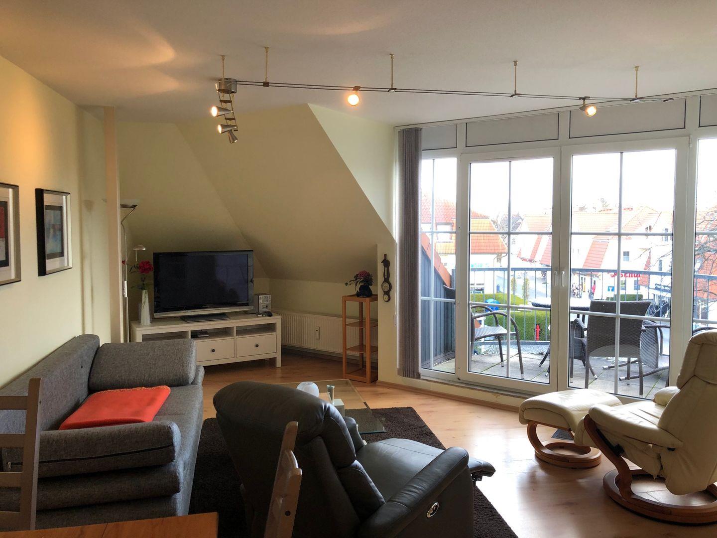 Moderne und gemütliche Ferienwohnung im Wohn-und Geschäftshaus, zentrale Lage, der Strand ist ca.250 m entfernt, 2.Stock, ca.60 m² groß, Balkon, zur Wohnung gehört der Parkplatz Nr.16, Fahrradraum ist vorhanden, Wohnzimmer mit Schlafchouch für 2 Personen und einem Esstisch, SAT-TV, Küchenzeile mit E-Herd, Bad mit Dusche/ WC, Schlafzimmer mit Ehebett, Bettwäsche und Handtücher bitte mitbringen