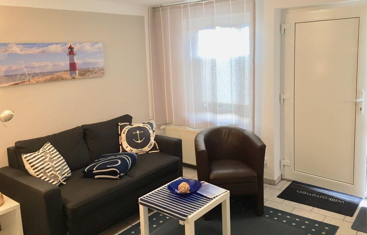 Moderne Ferienwohnung im Ferienhaus (paterre) für max. 2 Personen, ca 50mq, Terrasse, Terrassenmöbel, Sonnenschirm, Insektenschutz,