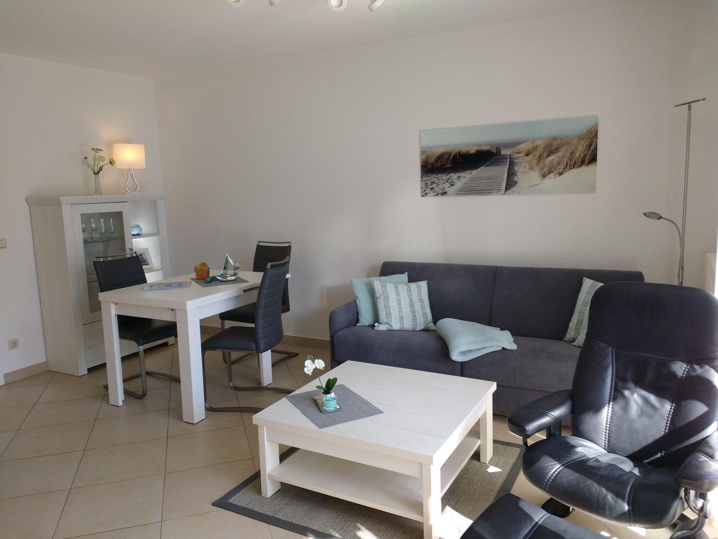 ca. 47qm, ruhige Lage, Strand ca. 250m, 1 PKW-Stellplatz,Fahrradabstellraum, Wohnzimmer mit Schlafcouch, Stressless-Sessel, Sitz- und Eßecke, kompl. ausgestattete Küchenzeile