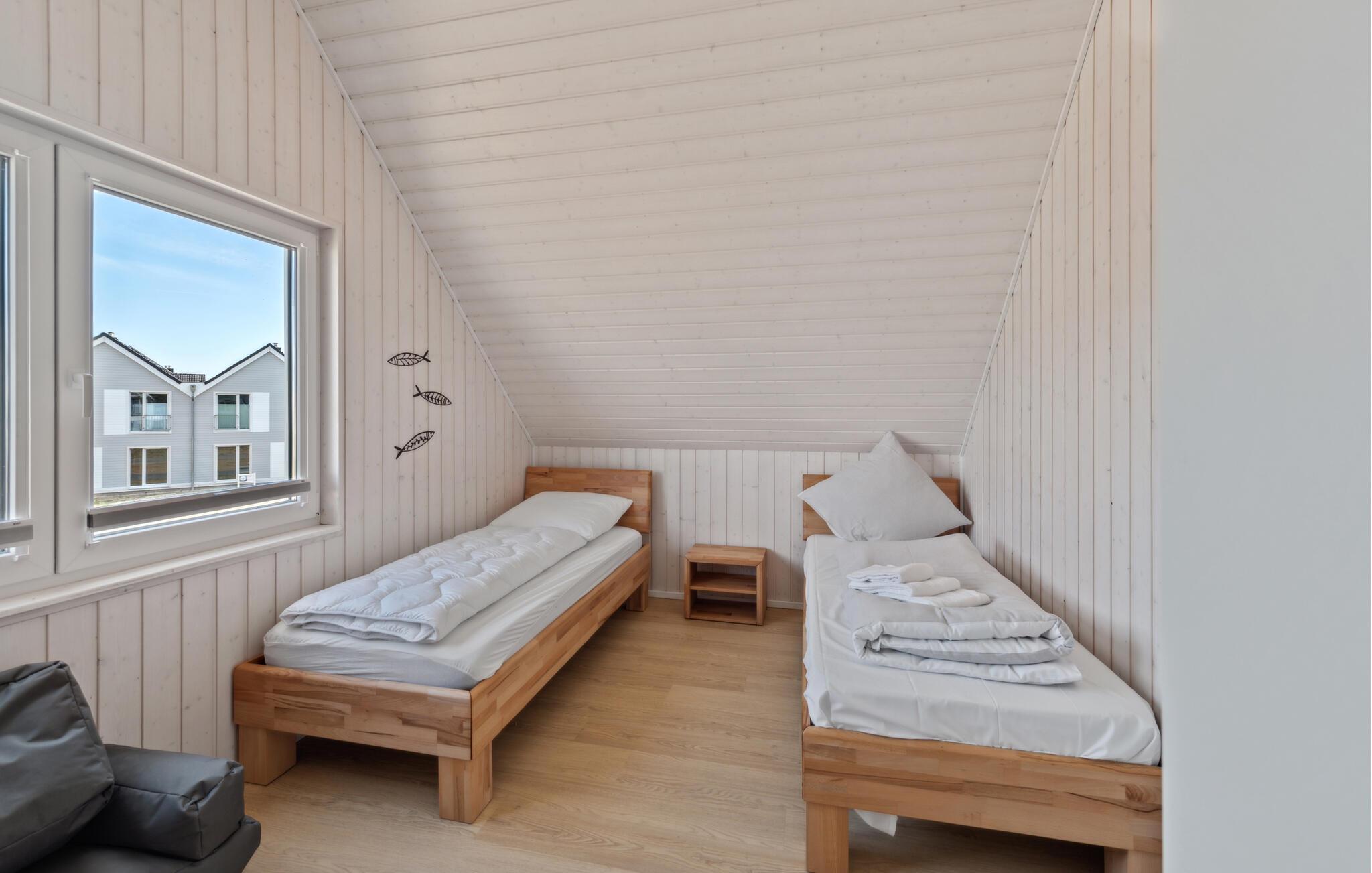 Selv hvis I har brug for at tage arbejde med på ferie, er "Seeräuber Koje" det perfekte sted. Soveværelset tilbyder rigelig plads og alt det nødvendige udstyr til at flytte hjemmekontoret til Østersøkysten. Og lad os være ærlige, det er så meget lettere at arbejde, når solen skinner klart, og duften af ??strand og hav fylder luften.