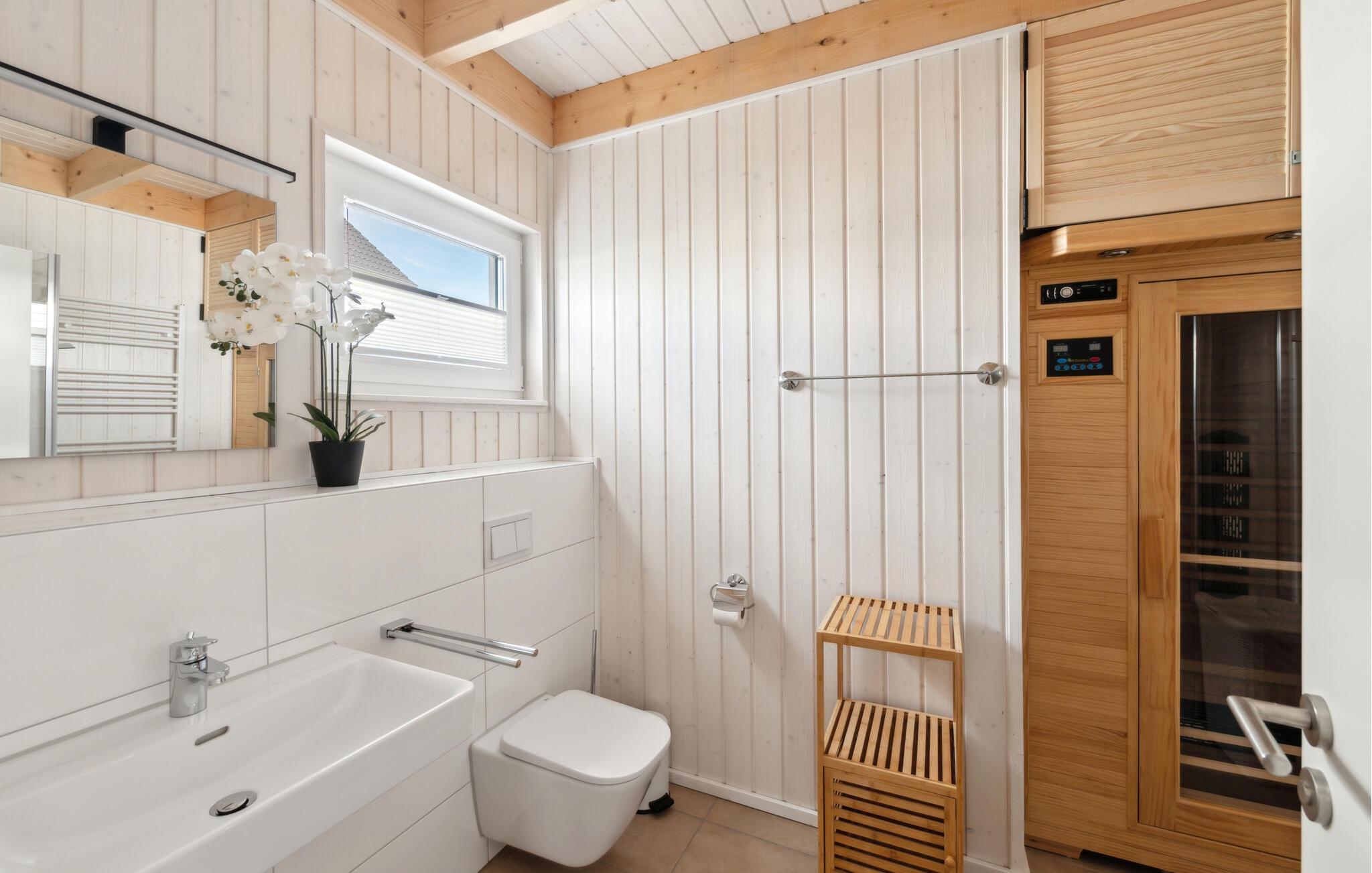 Ud over de to soveværelser fuldender det andet badeværelse ferieoplevelsen med et badekar og integreret bruser.