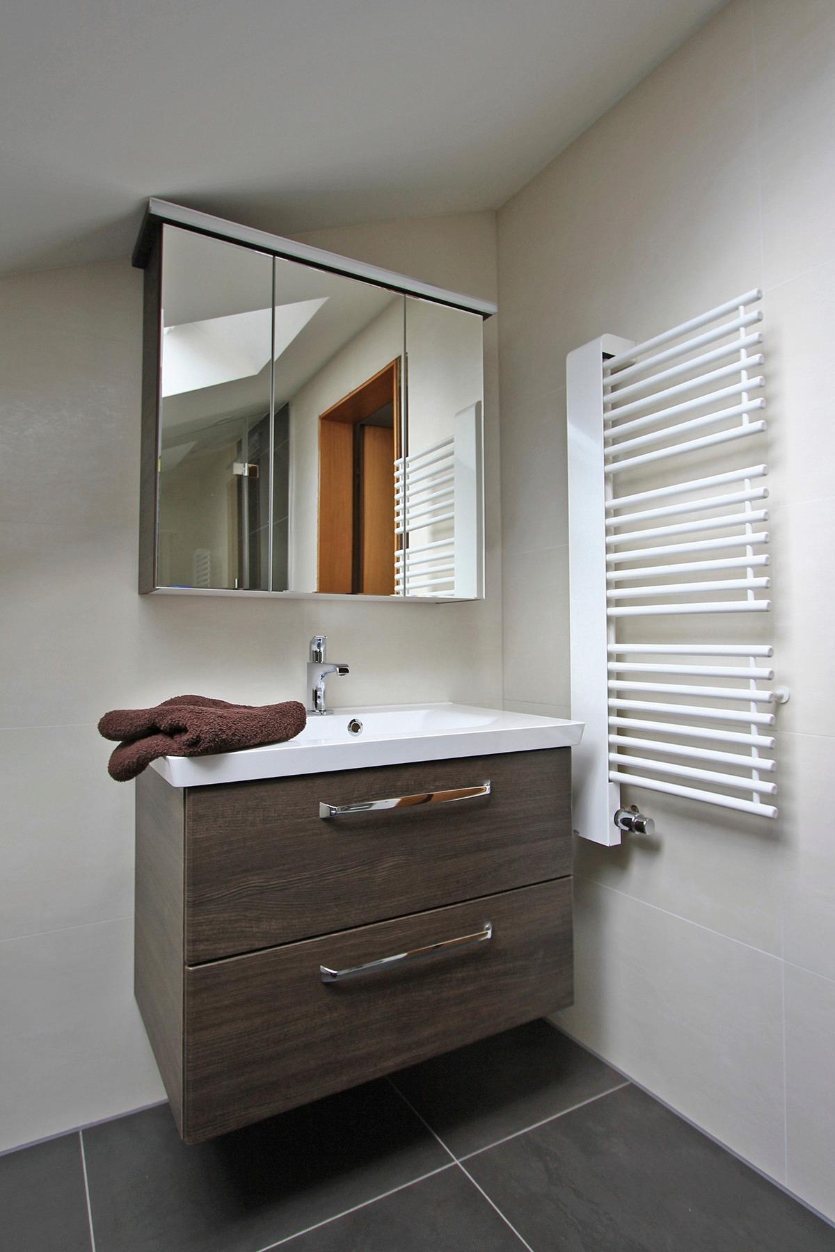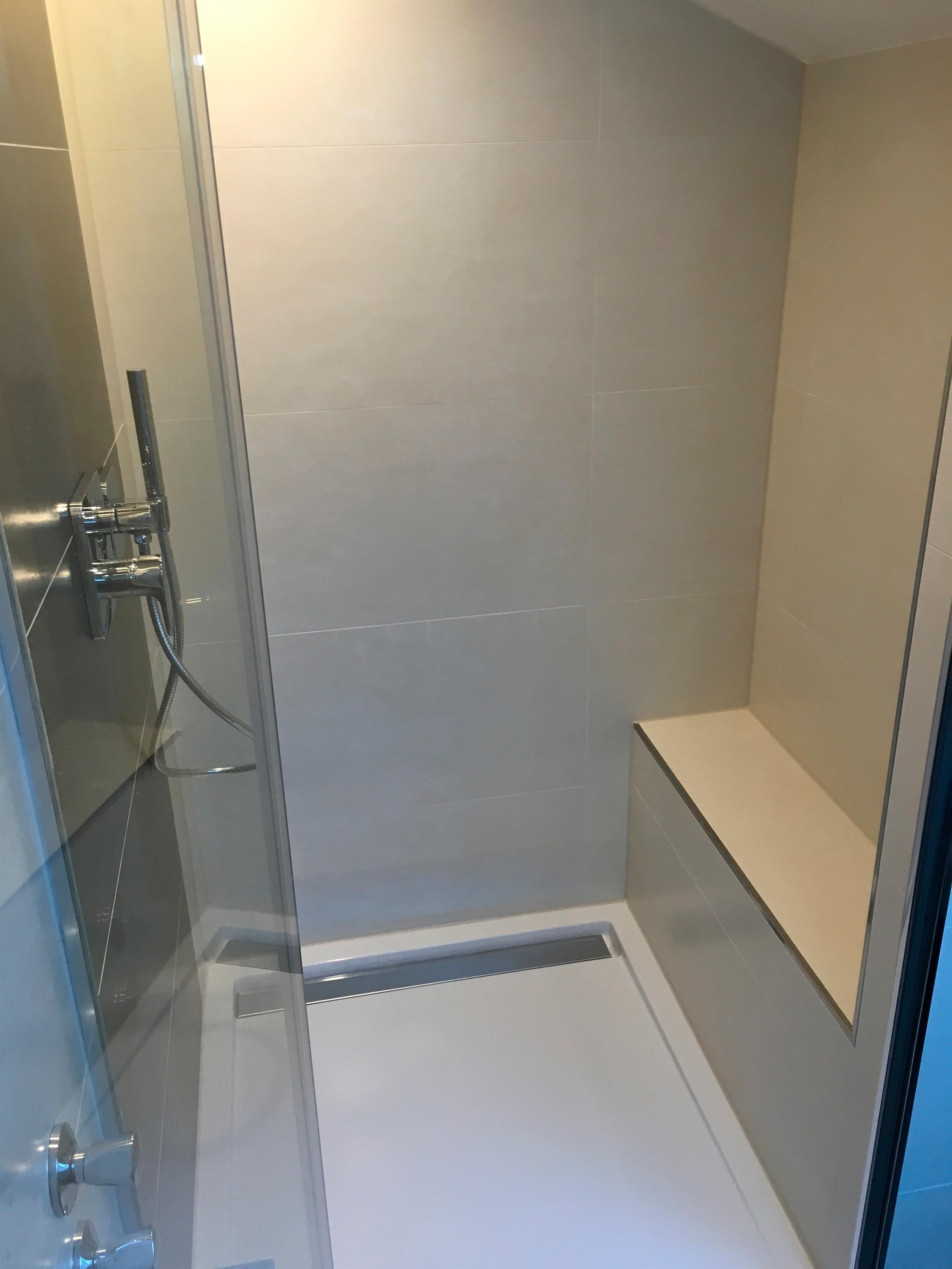 - neu gestaltetes Bad mit großer Dusche, einer Waschmaschine und einem Haartrockner