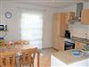 Der separate große Küchenbereich bietet einen Esstisch mit Stühlen und eine Küchenzeile. Diese ist mit einem Backofen, Herd mit Abzugshaube, Spülmaschine, Wasserkocher, Kaffeemaschine, Mikrowelle, Toaster, Wasserkocher und Kühlschrank komplett ausgestattet.