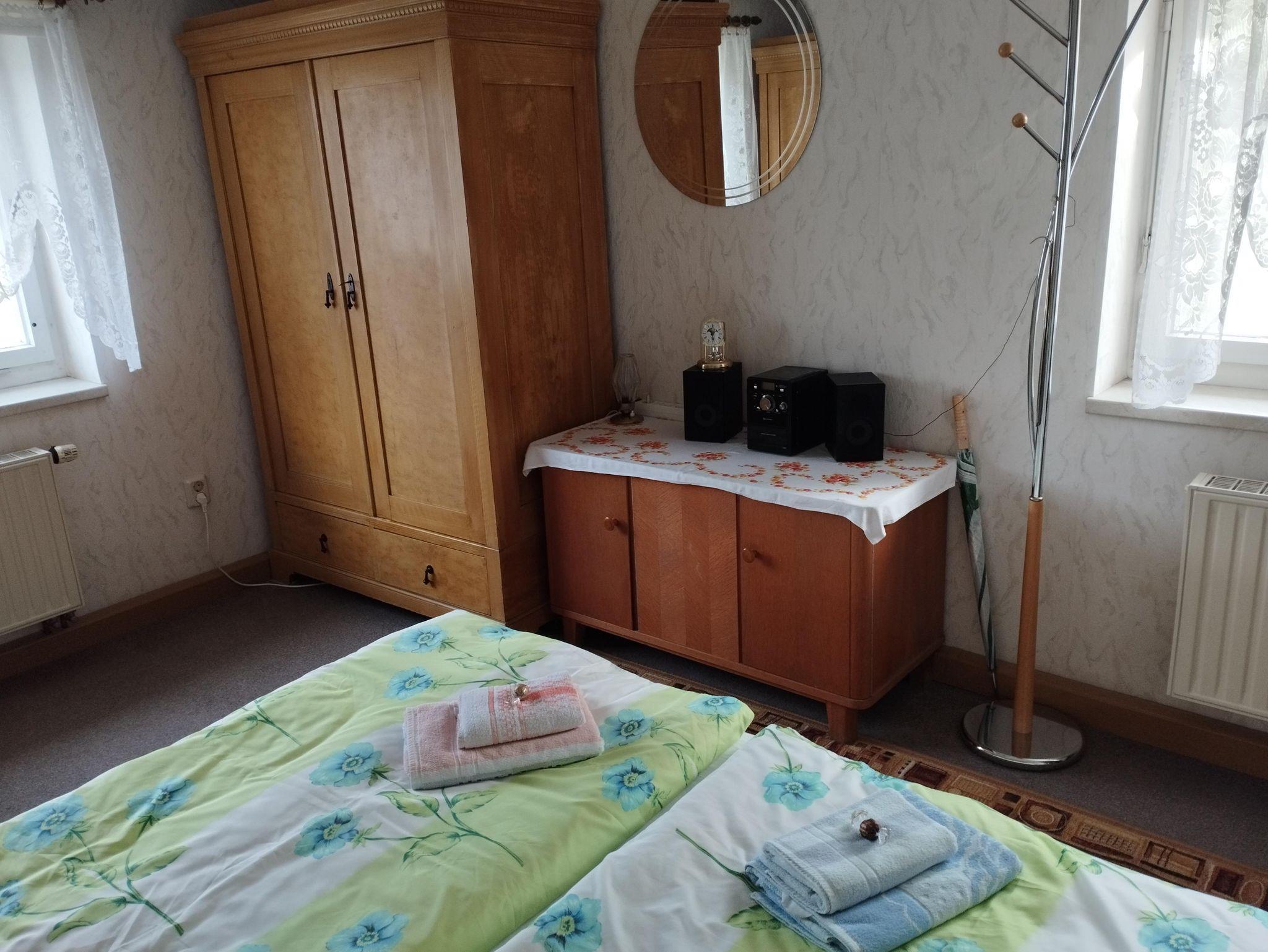 Sie möchten unsere schöne Oberlausitz kennen lernen ? Die Ferienwohnung befindet sich in einem Oberlausitzer Fachwerkhaus, ruhig und sonnig gelegen. Vermietung ist für 1-4 Personen möglich (Aufbettung im Wohnzimmer für 3. und 4. Person). Die 43 m² große Nichtraucherwohnung besteht aus 1 Wohnzimmer mit Schlafcouch, 1 Schlafraum, 1 kleine Küche, DU/ WC, Balkon, Garten und Spielwiese. Begrüßungstrunk, Tageszeitung, Handtücher, Bettwäsche und Endreinigung sind inklusive.