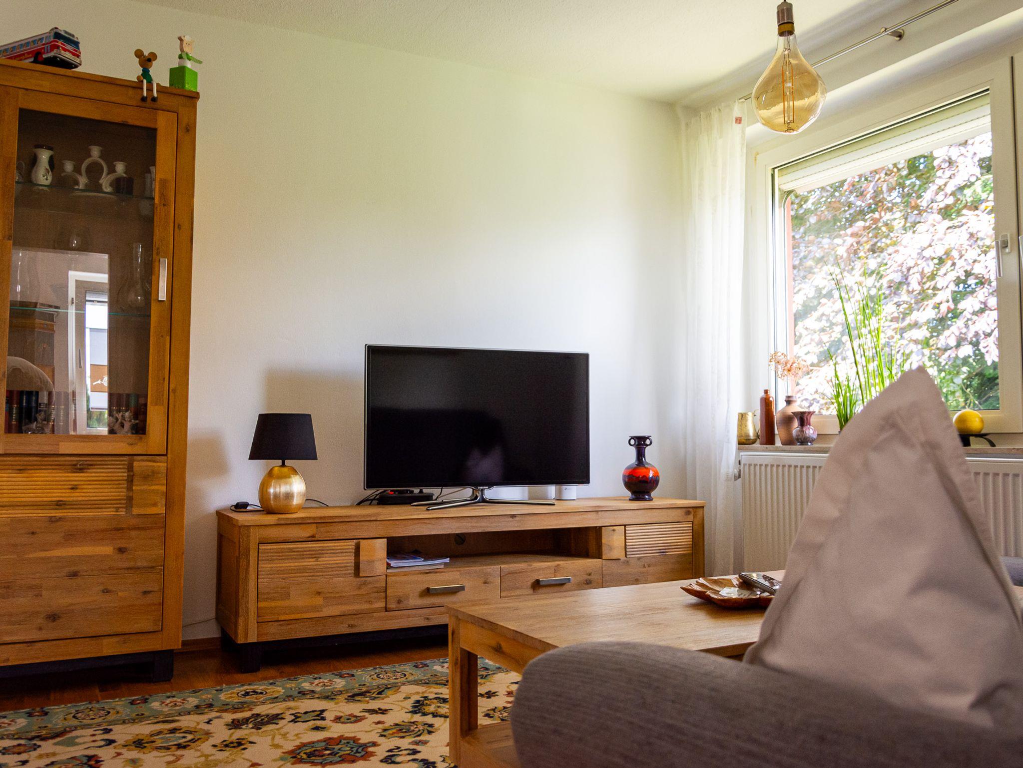 Das gemütliche Wohnzimmer mit Sofa, Couchsessel und Flachbild-TV lädt zum Verweilen ein.