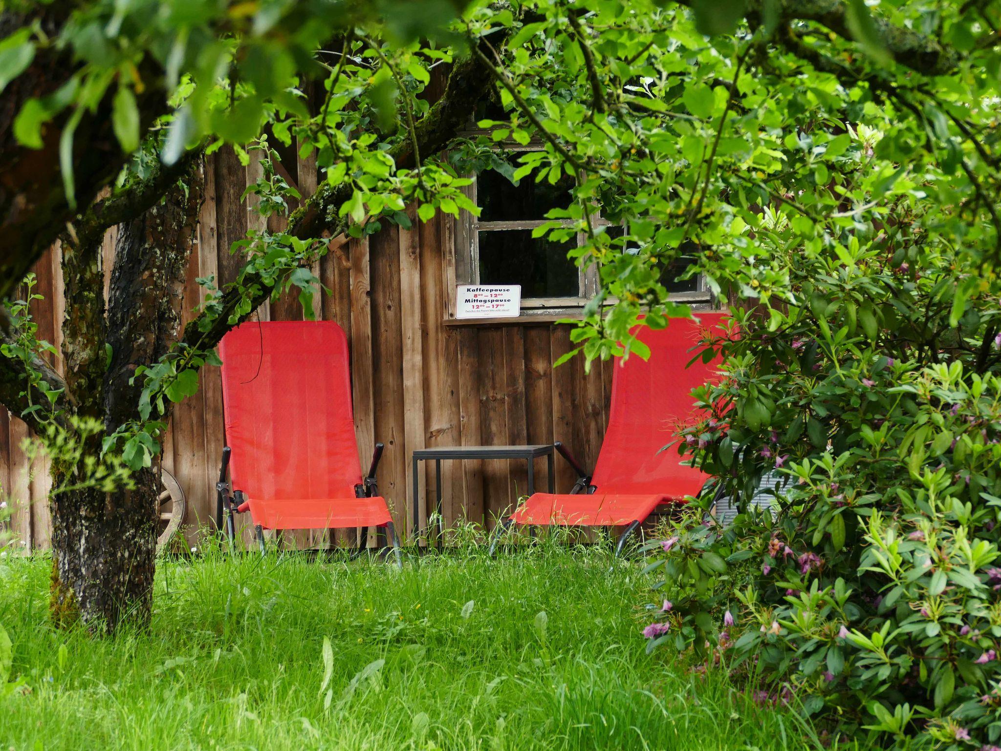 Ein Grillplatz und der große Garten mit altem Baumbestand laden zum Ausruhen ein.