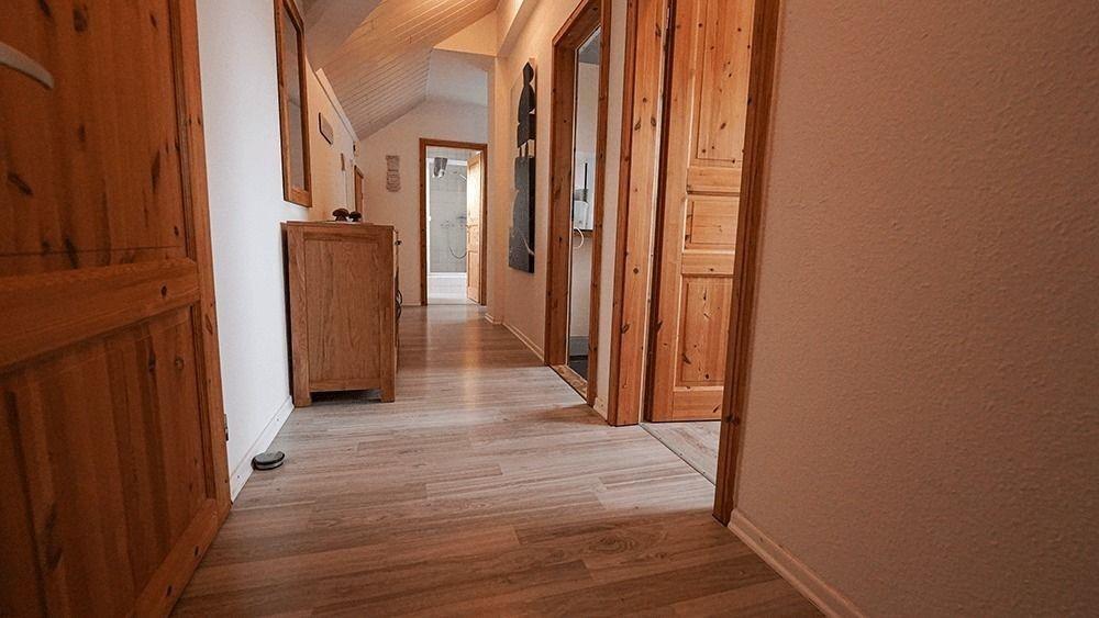 Eine Treppe führt Sie zur Ferienwohnung. Über einen großen Flug gelangen Sie in alle Räume.