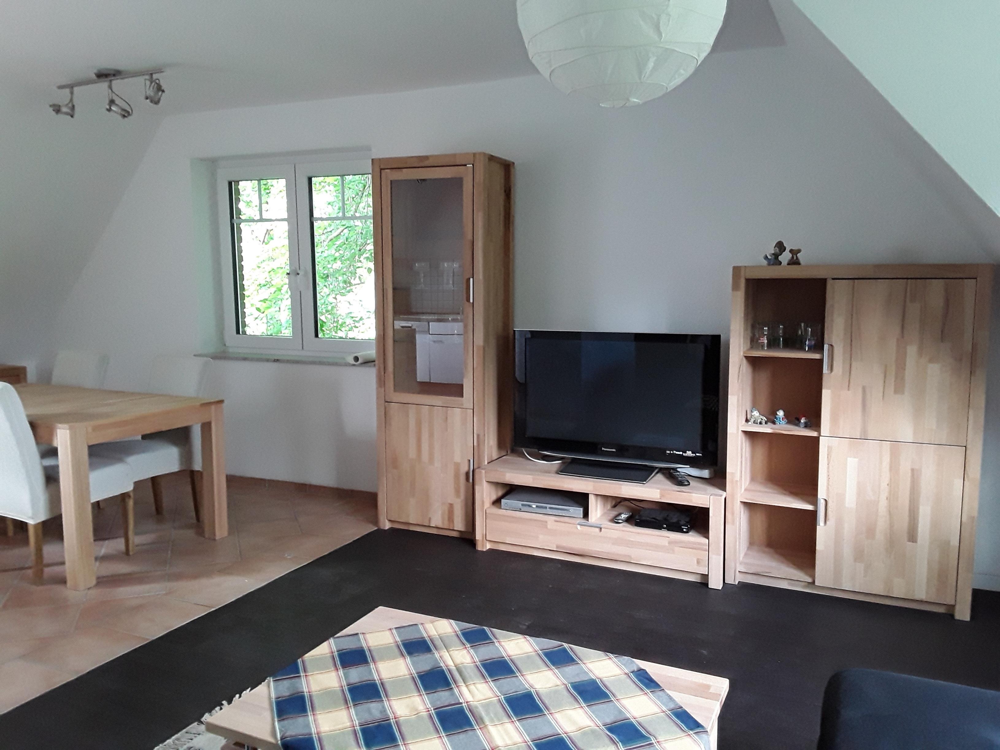 Die Möbel in der Wohnstube und im Essbereich sind aus Echtholz. Der Wohn-, Ess-, Küchenbereich ist ein 33 qm großer Raum. Die Einbauküche verfügt über einen Kühl-Gefrierschrank, einen Backofen, eine Mikrowelle, einen Toaster, eine Kaffeemaschine und ein Handrührgerät. In dem einen Schlafzimmer stehen ein Doppelbett und ein Kleiderschrank sowie zwei Kleinschränke mit Schubladen, in dem zweiten Schlafraum befinden sich zwei Einzelbetten. Die Betten haben eine Liegefläche von 2,00 x 0,90 m pro Person. Im Bad stehen eine Dusche, eine Badewanne und ein Föhn für Sie bereit.