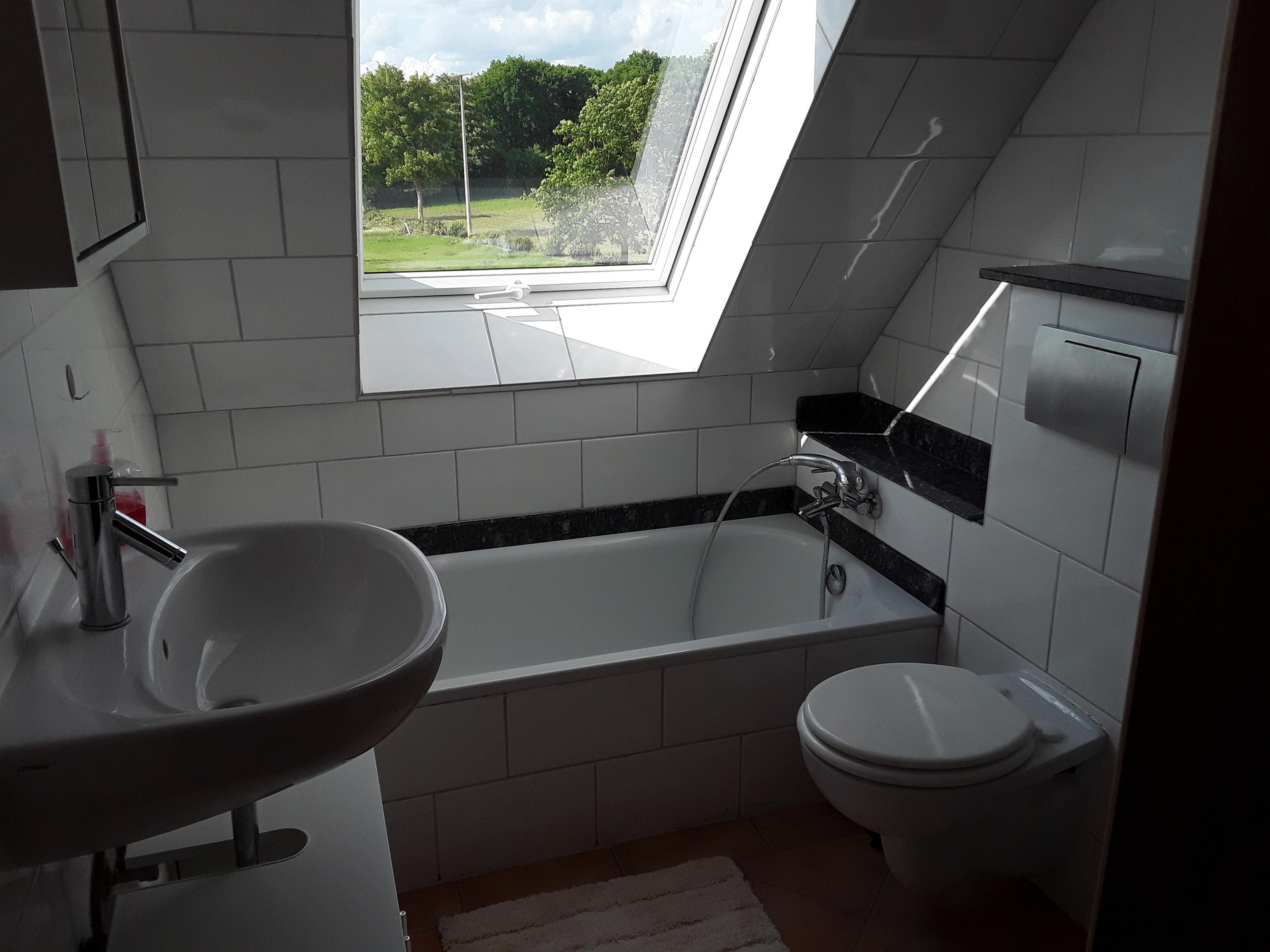 Badeværelse med bruser og badekar