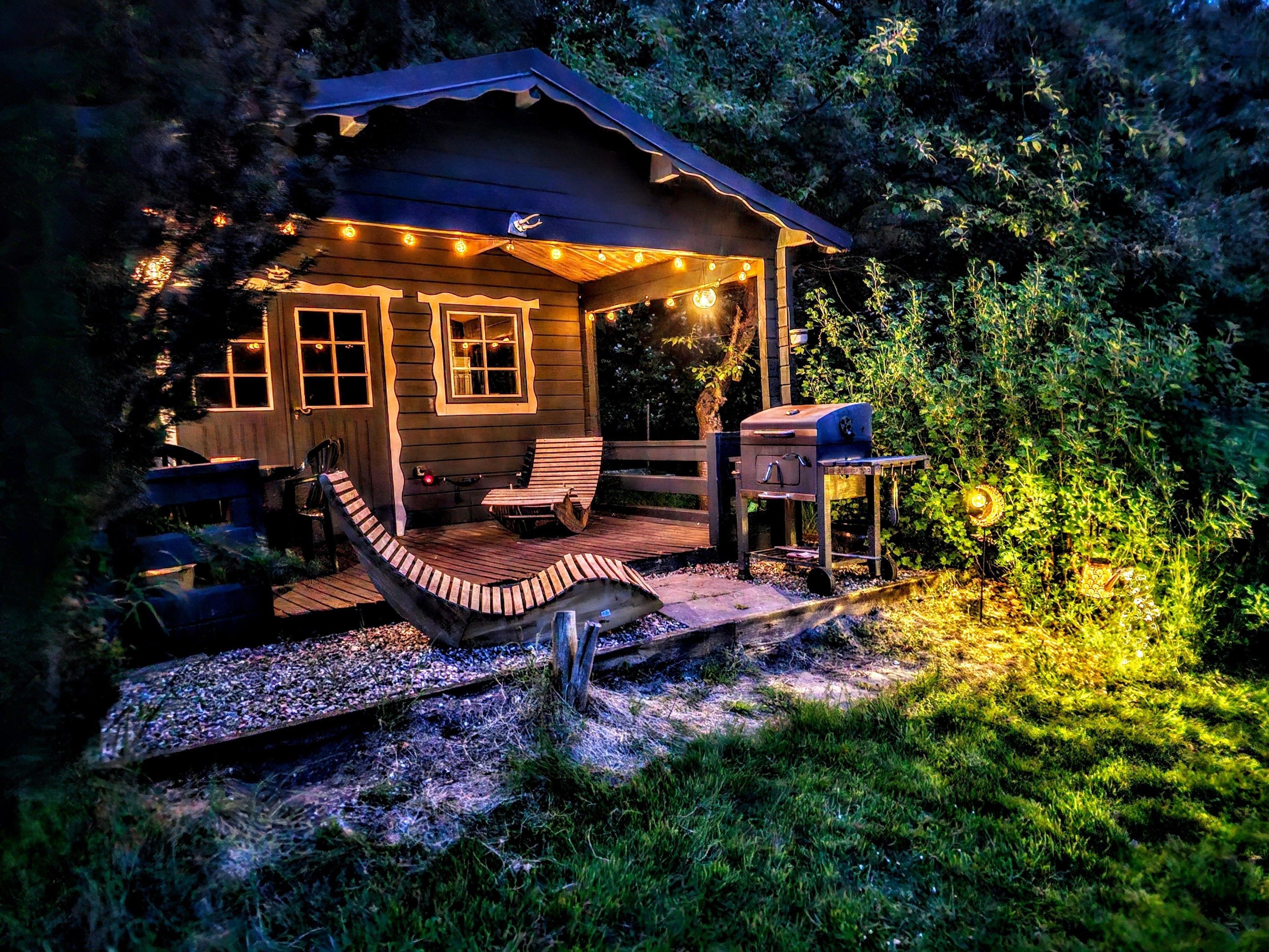 Natur zu genießen. Auf den Hängematten lauschen Sie dem rauschen des kleinen Wasserfalls auf meinem Grundstück. Eine Gartenhaus mit
