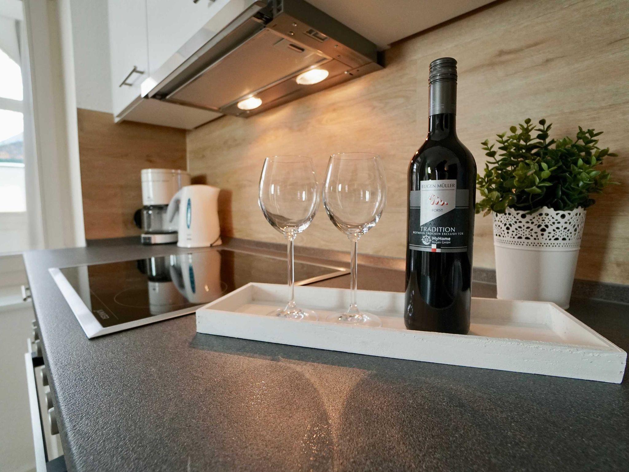 reichhaltige Küchenausstattung mit Herd mit Cerankochfeld, Dunstabzugshaube, Geschirrspüler, Kühlschrank, getrennte Müllentsorgung, Kaffeemaschine, Isolierkanne, Toaster, Töpfe und Pfannen, Geschirr und Gläser sind ausreichend vorhanden, Laminat- oder Fliesenboden für leichte Sauberhaltung. Auf jeder Etage befindet sich auch ein Staubsauger und weitere Reinigungsmittel, sowie großer Wäsche- und Kleiderschrank, Schuhschrank, Flurgarderobe, geräumiges Duschbad, Kabel-TV, kostenloses W-LAN, SodaStream, Fahrradabstellplatz vorhanden, Bei Bedarf können Sie sich gerne eine Mikrowelle an der Rezeption ausleihen.