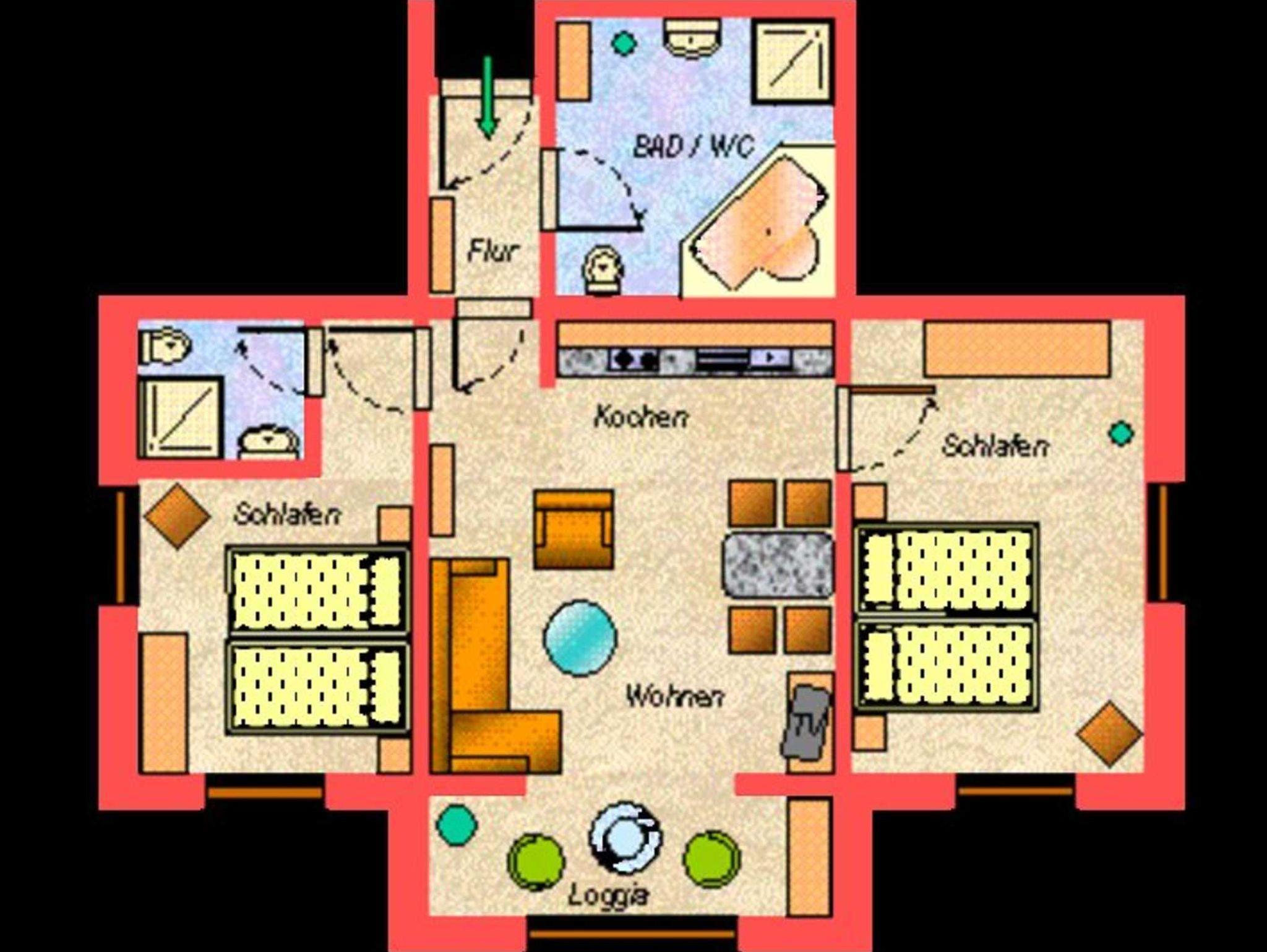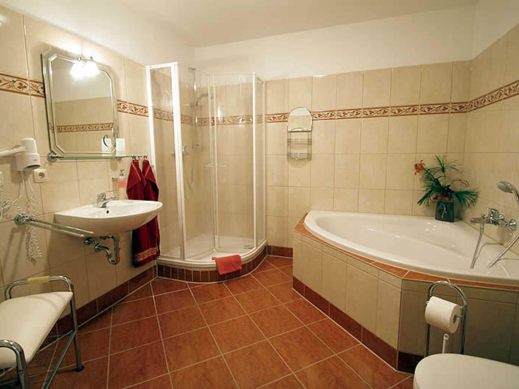 Unsere großzügig und stilvoll eingerichteten Appartements der Kategorie Balance sind für maximal 4 Erwachsende und ein Kind bis 3 J. im Kinderreisebett ausgelegt und bieten Ihnen einen Wohn- und zwei Schlafräume sowie einen Vorflur mit Garderobe. In den beiden durch das Wohnzimmer getrennten Schlafzimmern, stehen jeweils ein großer Schrank und ein bequemes Doppelbett mit Nachttischen und Leselampen. Im Wohnbereich bilden ein großer Tisch mit Stühlen, eine gemütliche Loggia mit Rattanmöbeln und eine große Sitzgarnitur ein großzügiges Wohnensemble. Hier findet jeder Gast mindestens eine Lieblingsecke. Zur Ausstattung gehören weiterhin eine komplett ausgestattete Küchenzeile, Kabel-Radio/TV, DVD-Player und Gesellschaftsspiele. Wundern Sie sich nicht, wenn Ihre lieben Kleinen bei uns von sich aus zum Waschen gehen wollen und dann länger bleiben: das sehr große Badezimmer mit einer Eckbadewanne für Zwei, Dusche, WC und Handtuchtrockner sind dann vielleicht Schuld daran. Ein zweites Bad mit Dusche und WC ist direkt von einem der beiden Schlafzimmer aus zugänglich. Die in warmen und freundlichen Farben gestalteten Appartements sind mit Laminatfußboden ausgelegt und vermitteln eine behagliche Wohnatmosphäre. Auf einer zur Villa gehörenden Terrasse, können Sie z. B. am Abend grillen. Die Appartements erreichen Sie mit einem Lift, mit dem Sie auch im Bademantel gekleidet, bequem in die Wellness- bzw. Fitnessetage gelangen.