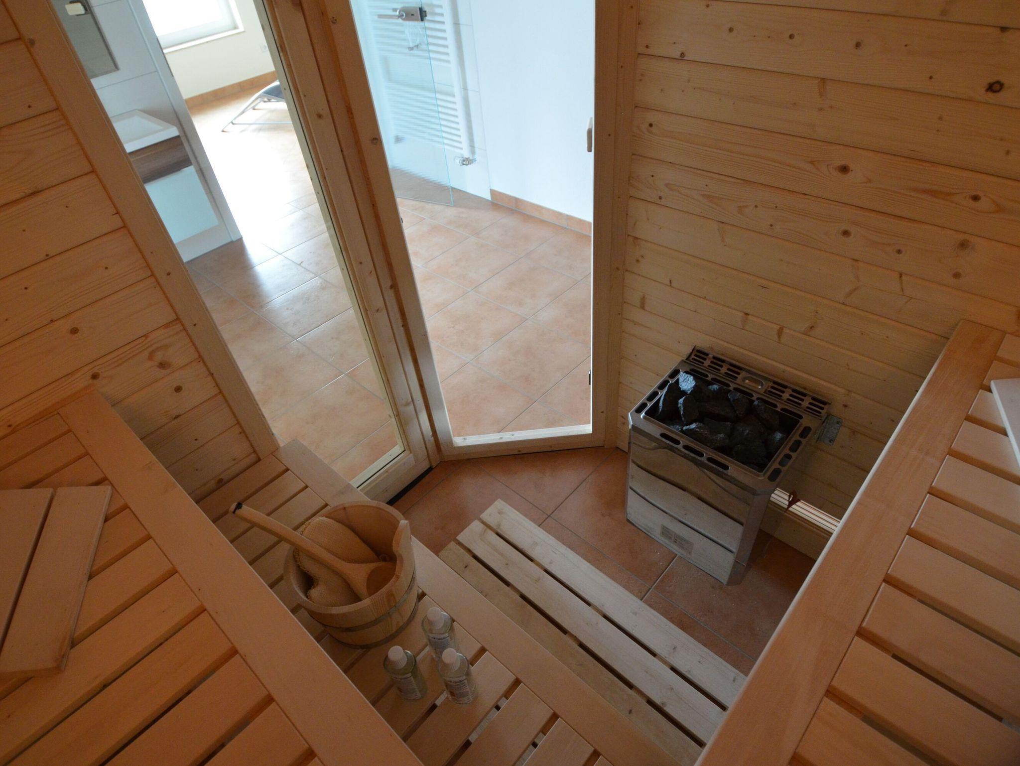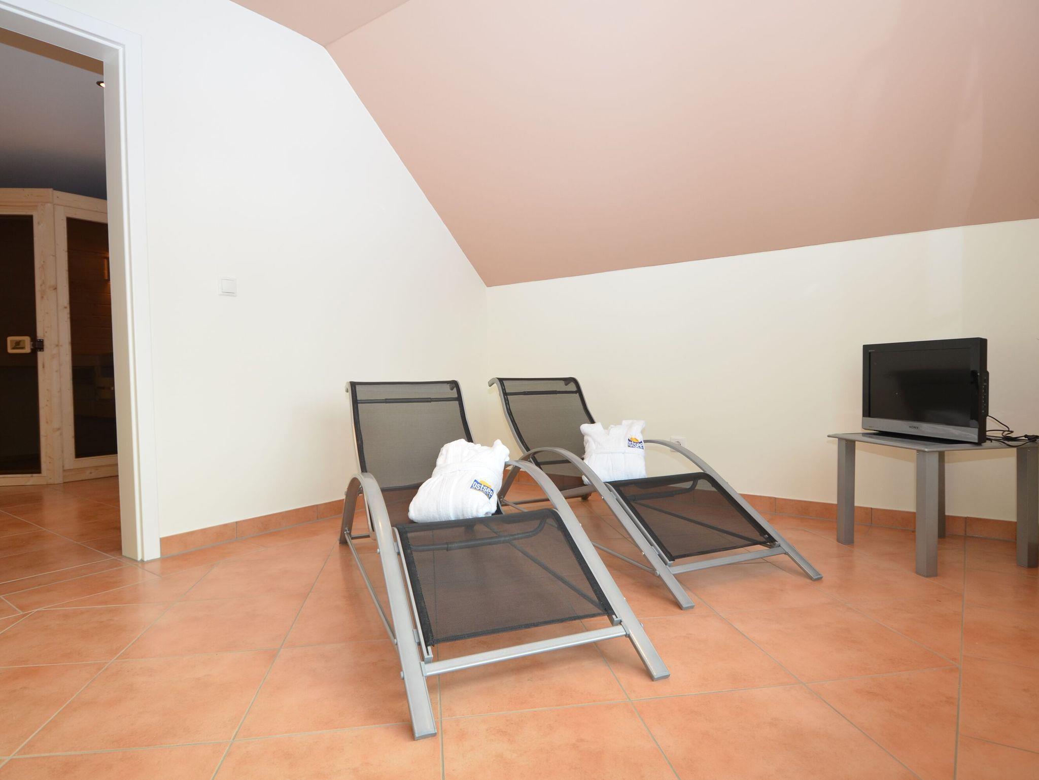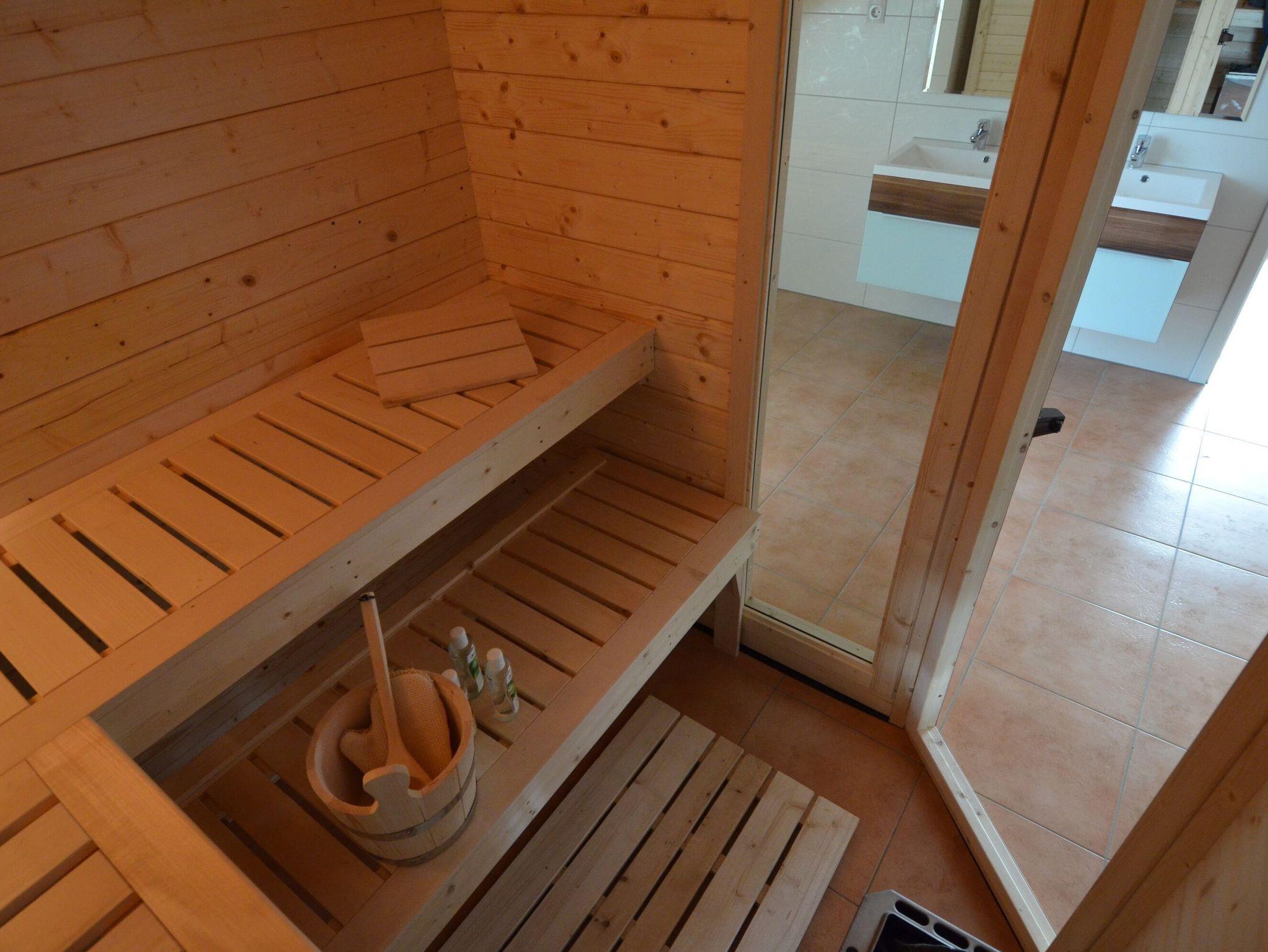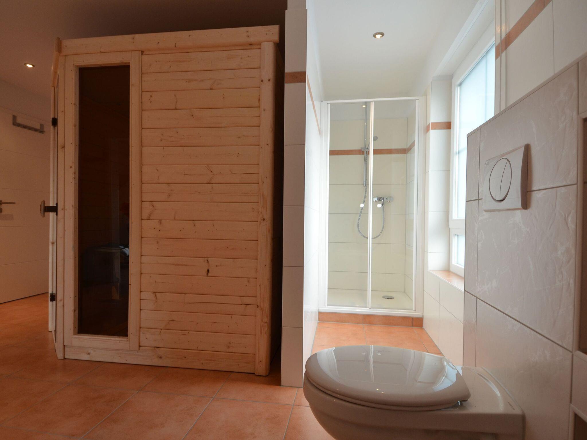Eines der beiden Badezimmer auf dieser Etage ist mit einer Dusche und einer Badewanne ausgestattet, das andere mit Dusche und einer Sauna. Auf dieser Ebene finden Sie ebenfalls den Saunaruheraum/Relaxraum mit Ruheliegen, sonnigem Südblick und eigenem TV vor.