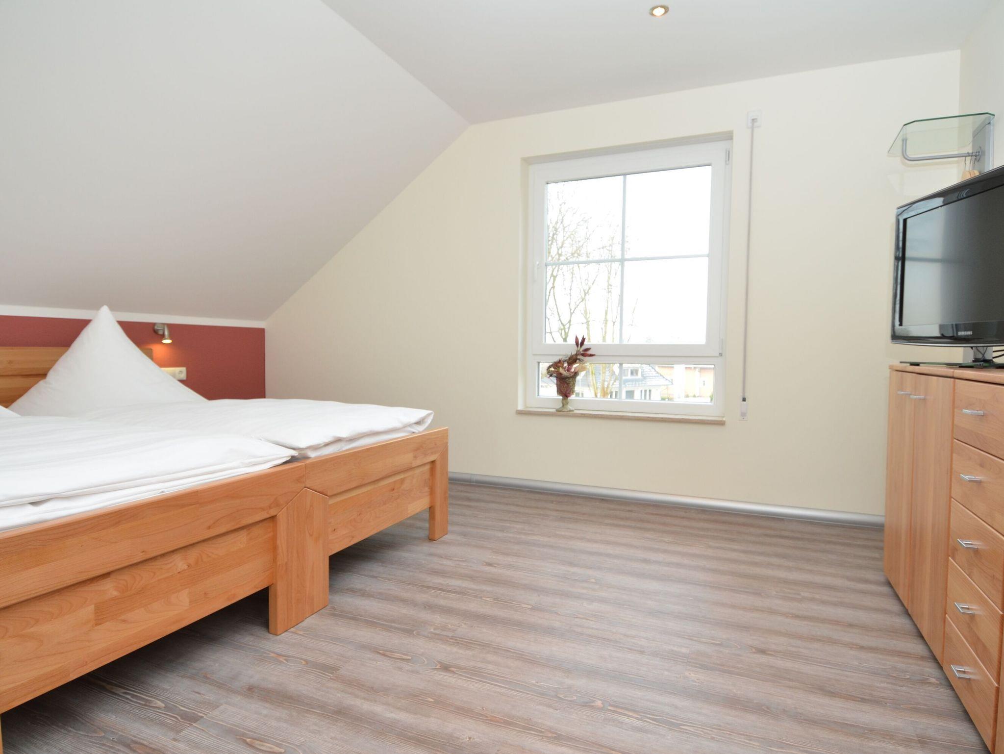 Im Obergeschoss befinden sich die 3 Schlafzimmer Ihres Urlaubsdomizils. Zwei davon sind jeweils mit einem Doppelbett (1,80 x 1,90m) ausgestattet, das dritte verfügt über zwei Einzelbetten (0,90 x 1,90m), die auch zusammen gestellt werden können. In einem der Schlafzimmer gibt es ebenfalls einen zusätzlichen TV.