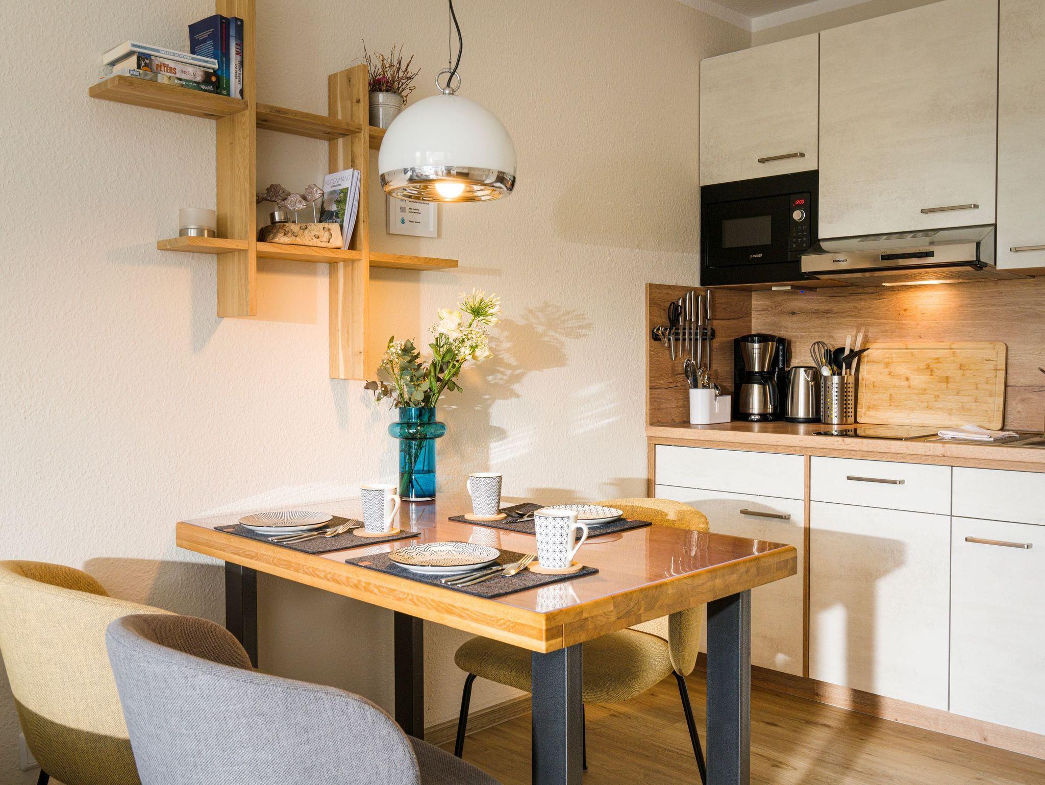 In der neuen und modernen Ausstattung erwartet Sie ein Flachbild-TV mit Sky-Sendern, eine Kaffeemaschine mit Filter, eine Mikrowelle und ein Geschirrspüler. Die Bettwäsche ist bereits inklusive und auch Ihr Haustier ist in der Ferienwohnung herzlich willkommen. Ein Balkon lädt zu gemütlichen Stunden im Freien ein und die offene Wohnküche bietet ausreichend Platz zum gemeinsamen Kochen und Essen. Für die Aufbewahrung Ihrer Fahrräder steht ein Fahrradkeller zur Verfügung. Eine WLAN-Verbindung ist ebenfalls vorhanden.