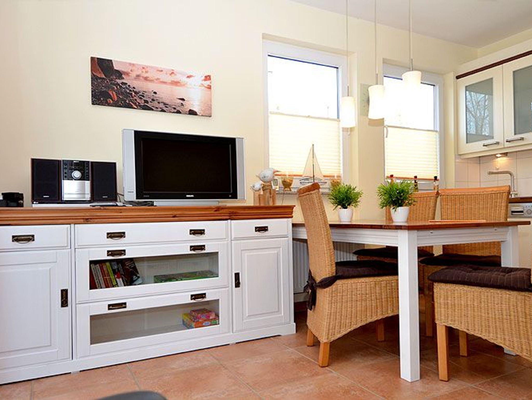Die Nichtraucher-Wohnung bietet ein geräumiges Wohnzimmer mit einer bequemen Schlafcouch, einem Esstisch und einer Küchenzeile die keine Wünsche offen lässt. Sie finden hier eine Spülmaschine, eine Mikrowelle, einen Kühlschrank, 4-Platten-Ceranfeld, einen Backofen und diverse Kleingeräte, die die Ausstattung komplettieren.