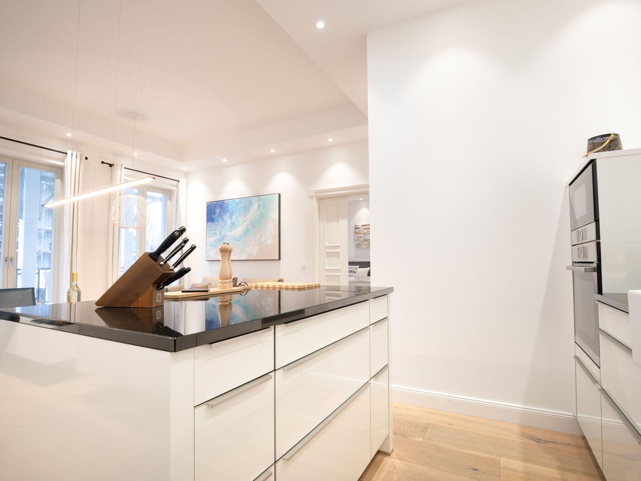 Die Ferienwohnung FIRST Bel Etage befindet sich im 1. Stock des Hauses FIRST Sellin und bietet auf 87 m² Platz für maximal 3 Personen. Sie verfügt über ein Schlafzimmer und 2 Badezimmer, wodurch hier Platz für die ganze Familie vorhanden ist. Zur Ausstattung gehört ein Tiefgaragenstellplatz, um Ihr Auto sicher unterzubringen. Die modern eingerichtete Küchenzeile ist mit einer Spülmaschine ausgestattet, um Ihnen das lästige Abwaschen zu ersparen.