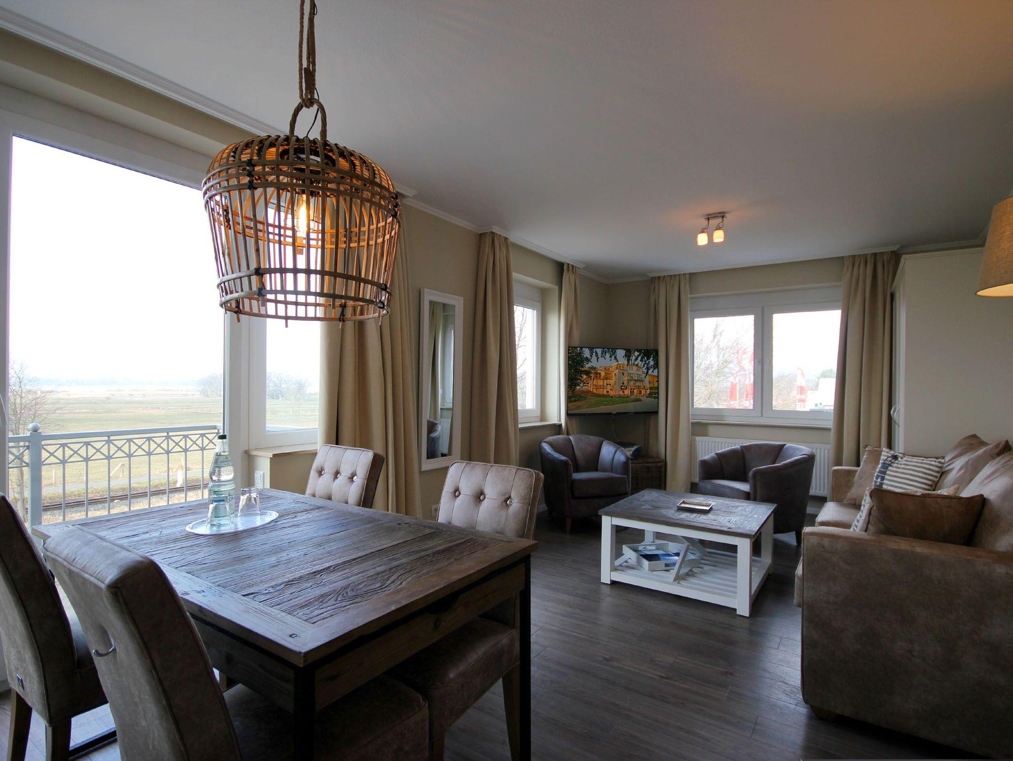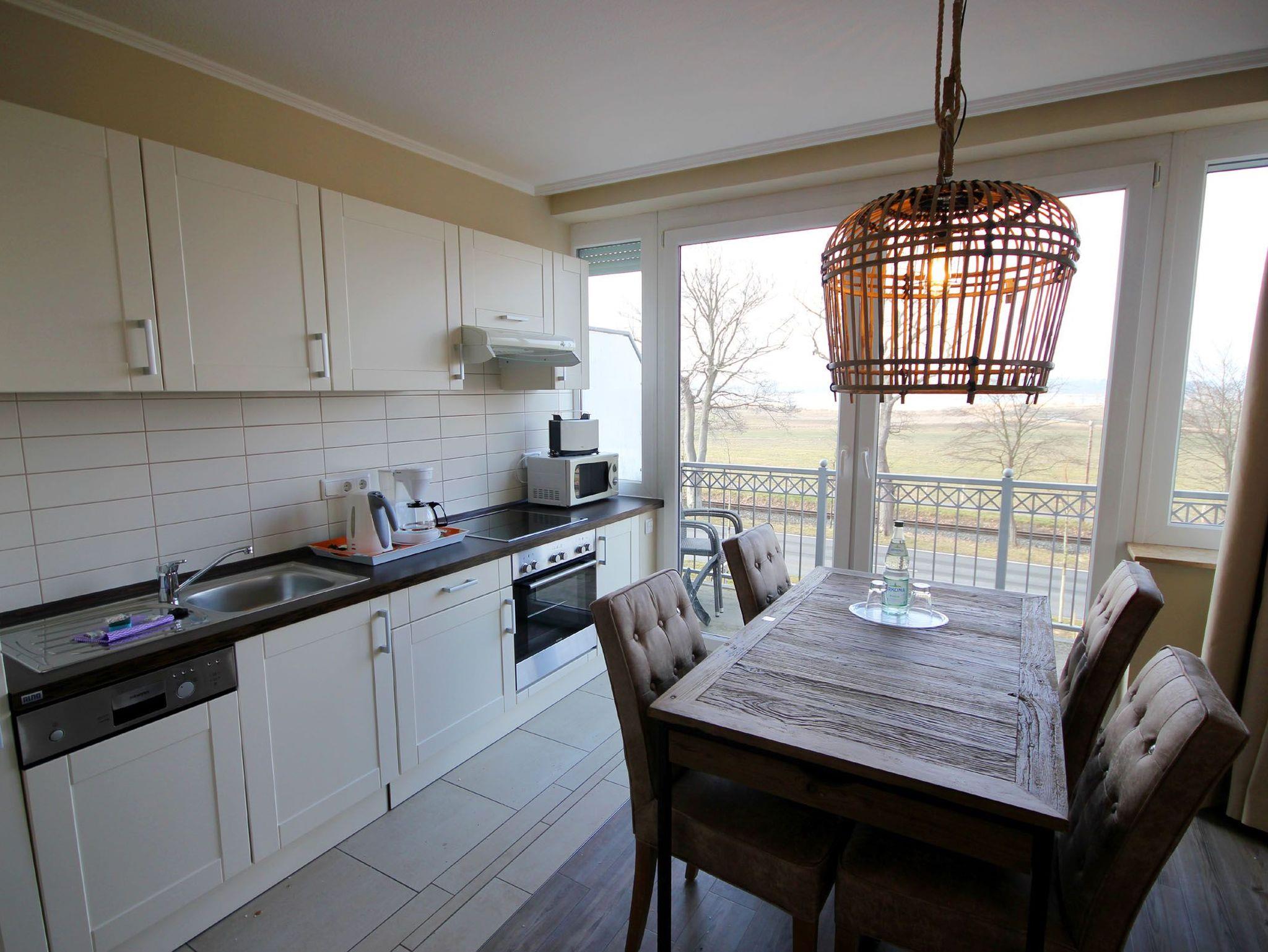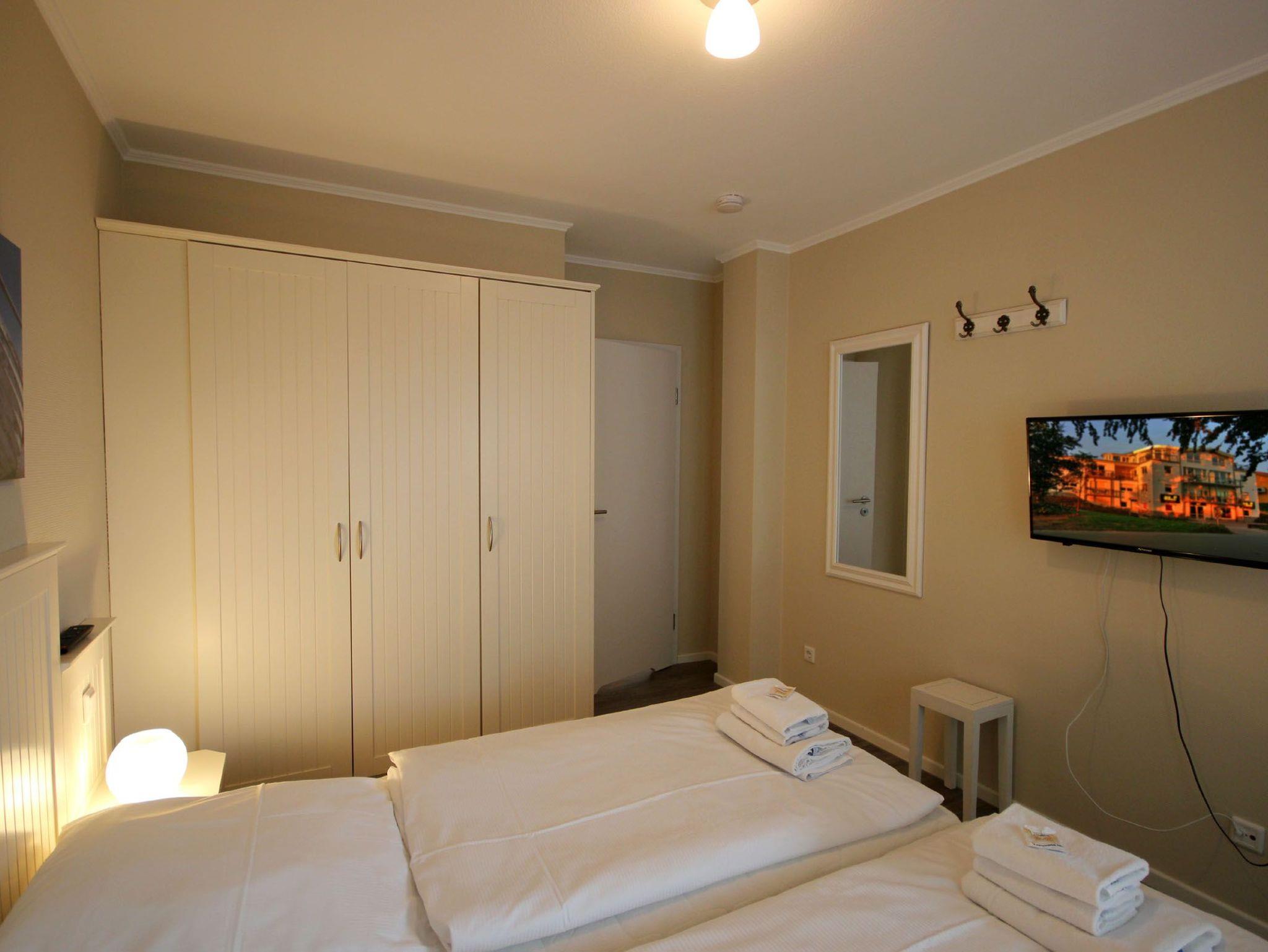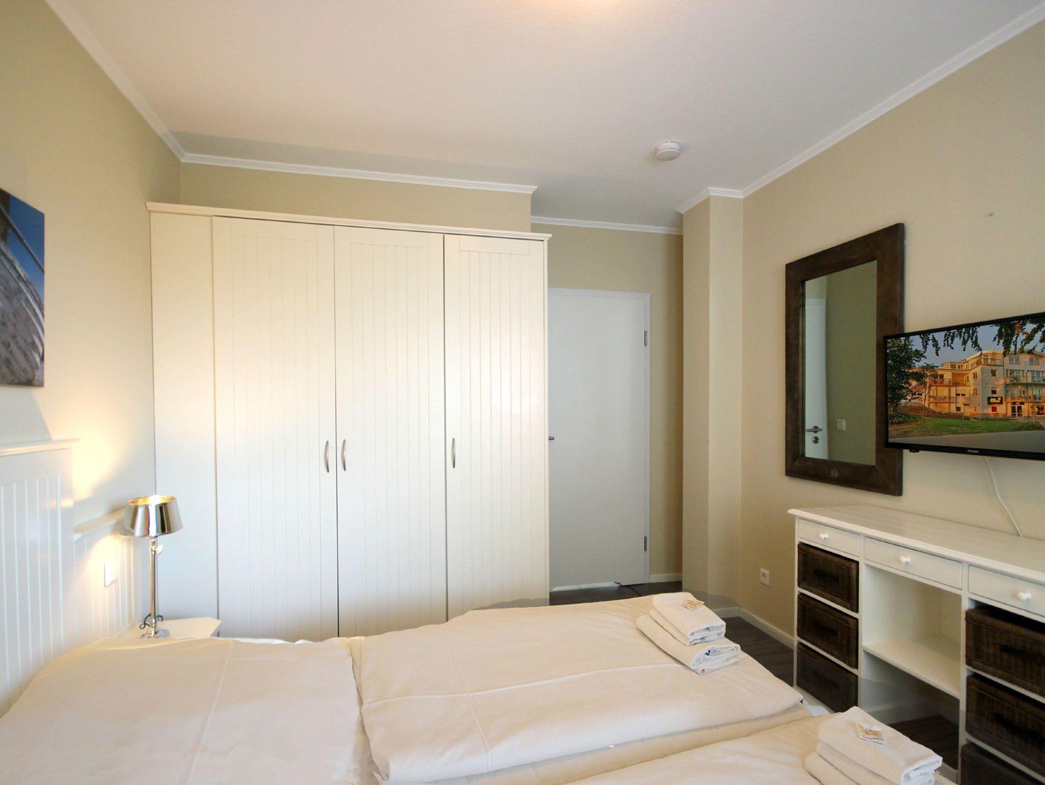 Ihre 2-Zimmer Ferienwohnung 65RB10 Seepferdchen befindet sich im 1. Obergeschoss und ist ca. 49 qm groß. Die Nichtraucherwohnung verfügt über zwei Balkone und ist für bis zu 4 Personen gut geeignet. Neben dem gemütlichen Wohnbereich mit Zugang zum Balkon mit Blick auf den Selliner See, gehört eine Sitzecke mit Schlaffunktion, ein Essbereich, Flachbild TV sowie WLAN. Im Schlafzimmer erwartet Sie ein Doppelbett, ein zusätzlicher TV, ein Kleiderschrank sowie ein weiterer Balkon. Zudem können Sie eine voll ausgestattete und im Wohnbereich integrierte Küchenzeile mit Geschirrspüler, Backofen, Wasserkocher, Toaster, Kaffeemaschine sowie umfangreiches Küchengeschirr nutzen. Das moderne Badezimmer erwartet Sie mit Waschtisch, WC und Dusche. Einen Parkplatz sowie eine Fahrradunterstellmöglichkeit befinden sich direkt am Objekt.
