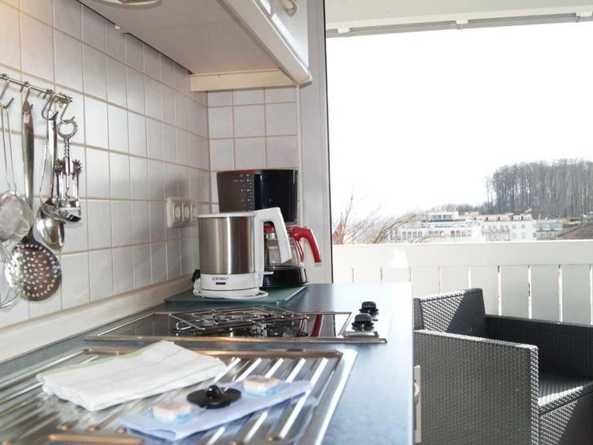 Dieses 1 Raum Appartement im obersten Stock mit einem seitlichem Blick auf die Ostsee und über Sellin hat ca. 40 m² bietet eine Unterbringung für 2 Personen.