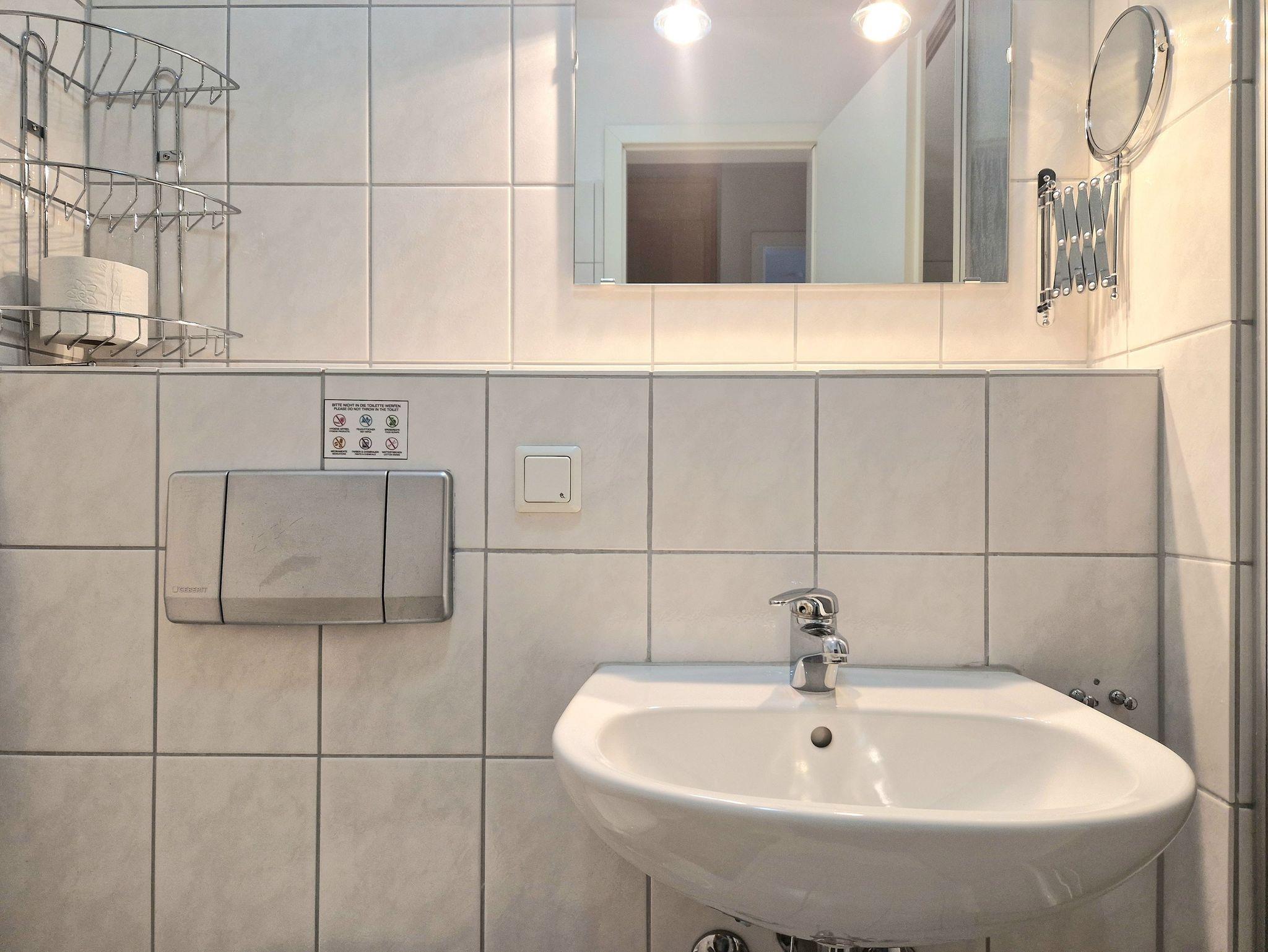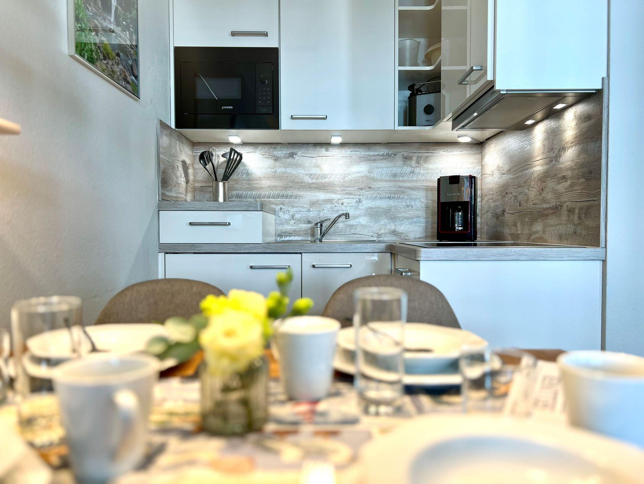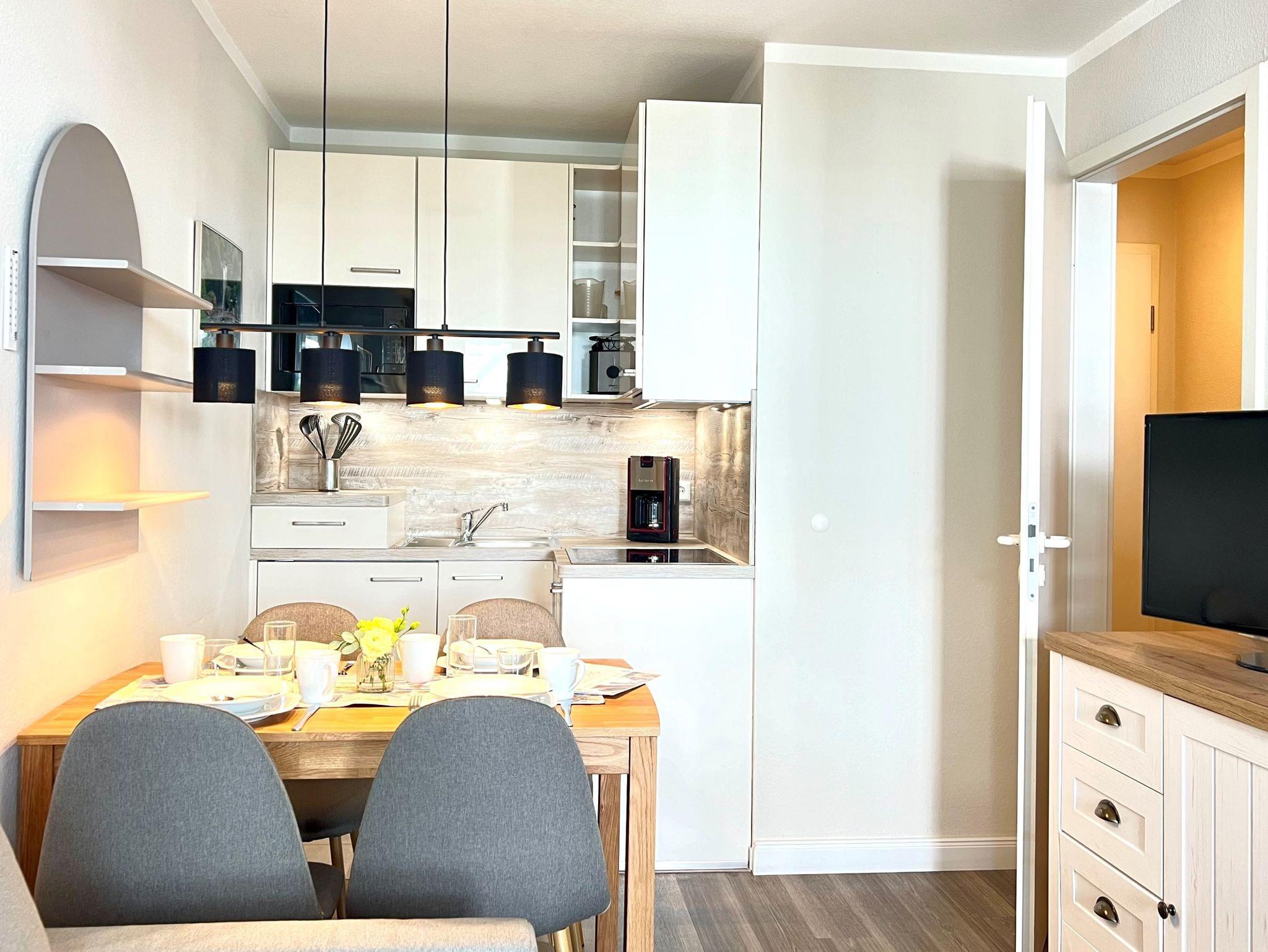 In der offenen Küche, die mit einer Kaffeemaschine und einem Toaster ausgestattet ist, können Sie sich selbst versorgen. Ein Fernseher mit 3 Sky-Sendern rundet die hochwertige Ausstattung ab. Auf dem Balkon in Nordwestlage können Sie den Ausblick und die Sitzmöglichkeiten genießen und sich dabei wie im Urlaub fühlen. Bitte beachten Sie, dass es sich um ein Nichtraucher-Apartment handelt und Haustiere nicht gestattet sind.