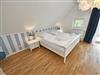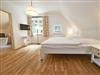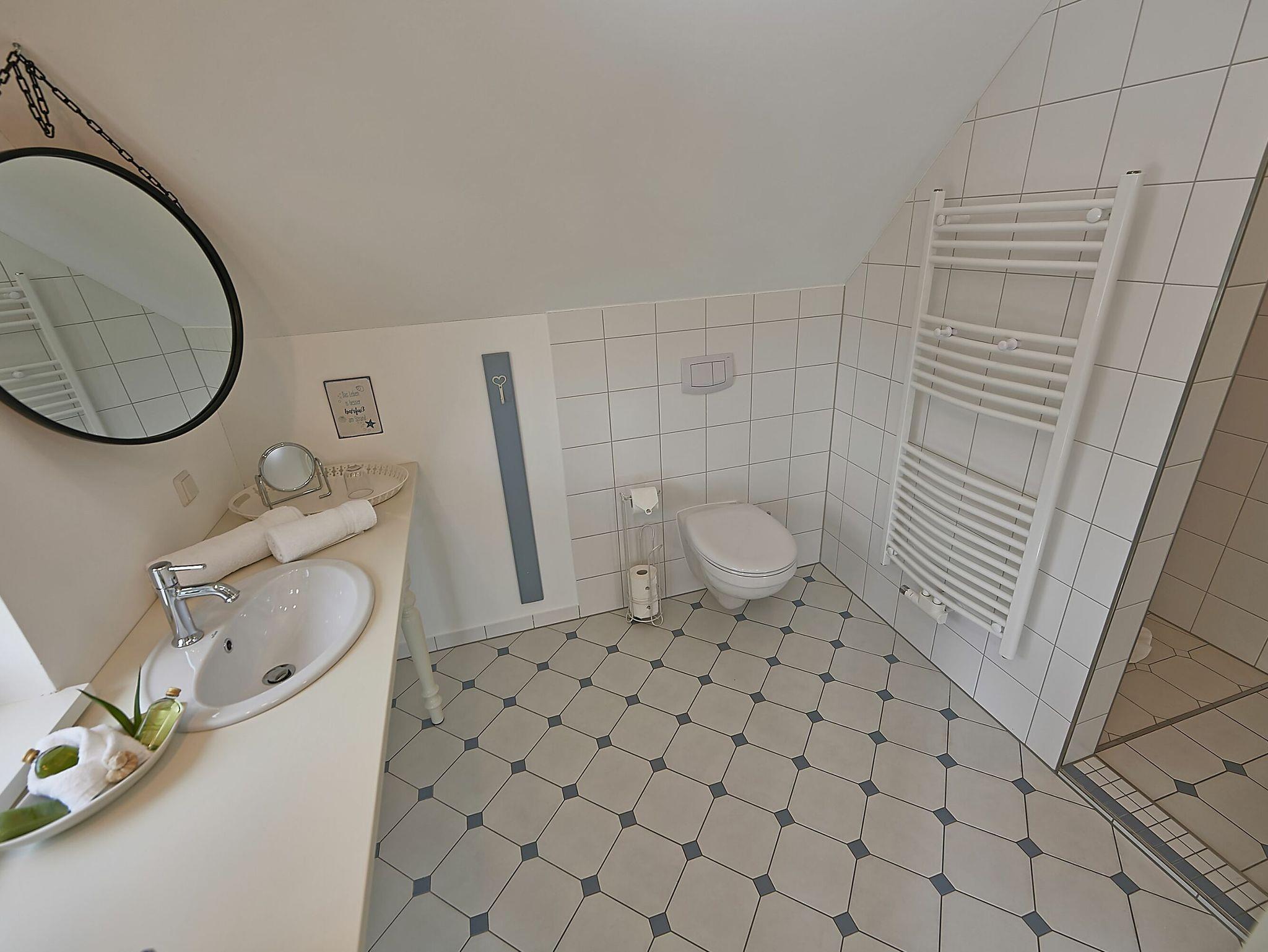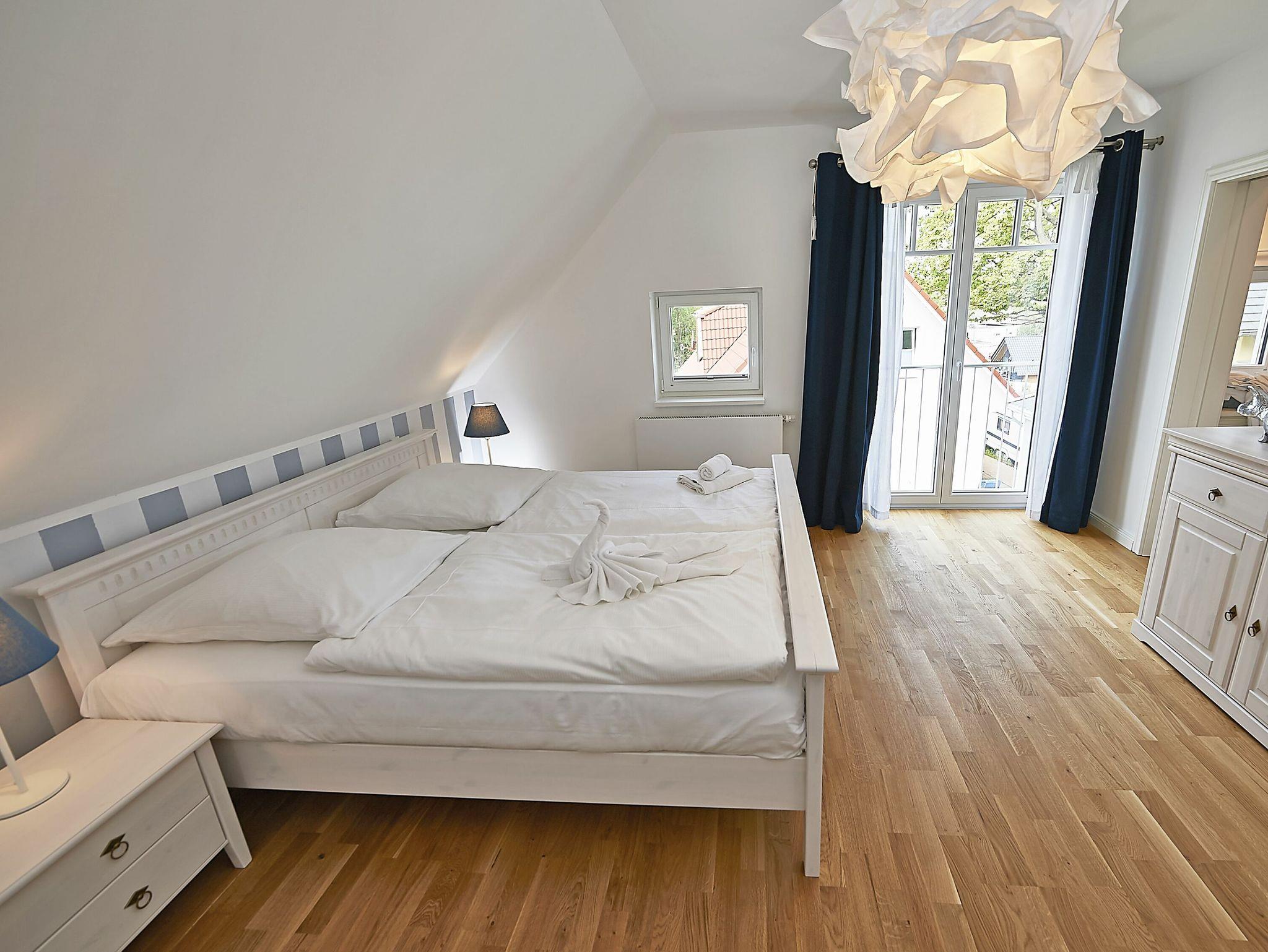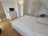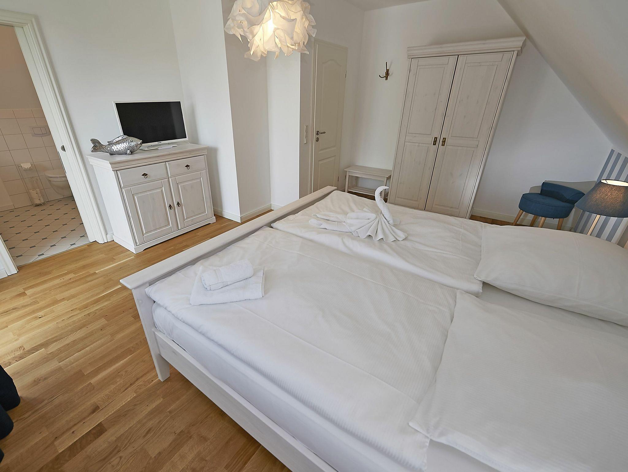 Im Dachgeschoss sind die beiden Schlafzimmer mit je einem großen Doppelbett und je einem separaten Bad untergebracht. Beide Bäder verfügen über eine Dusche und ein Bad zusätzlich über eine Badewanne. Der Fußboden ist mit einem Eichenparkett belegt. Die Heizung erfolgt über Wandheizkörper, welche sich individuell regeln lassen.