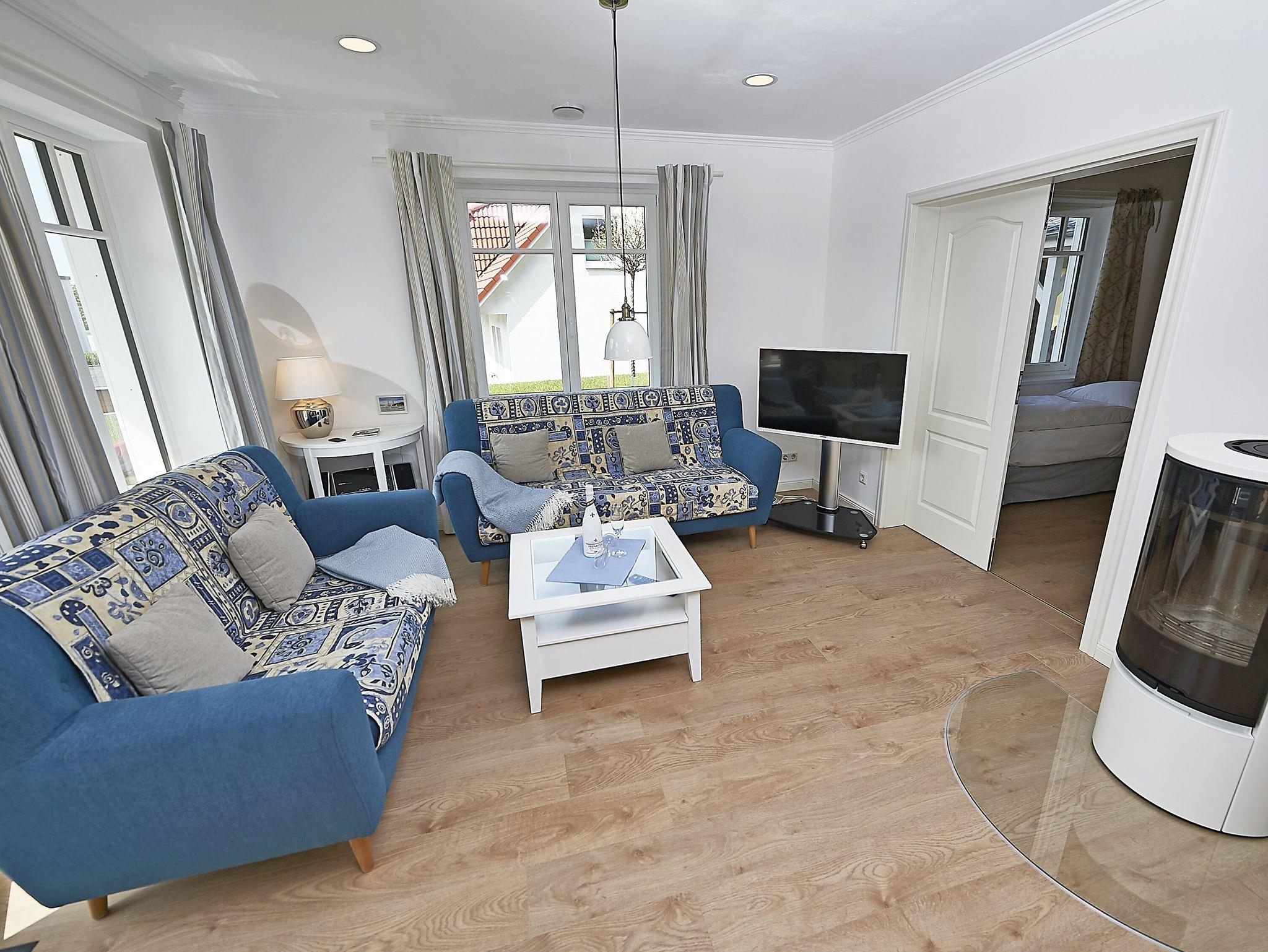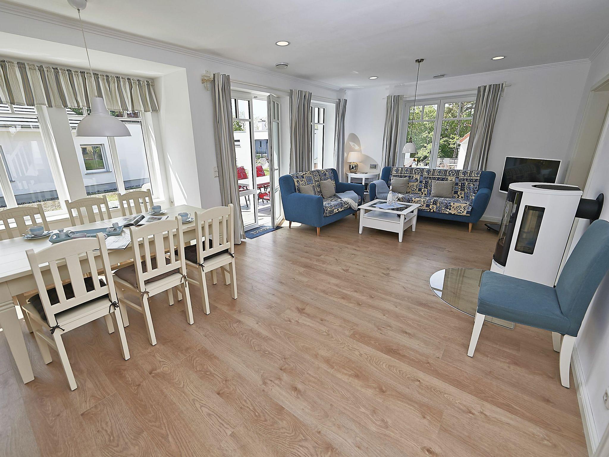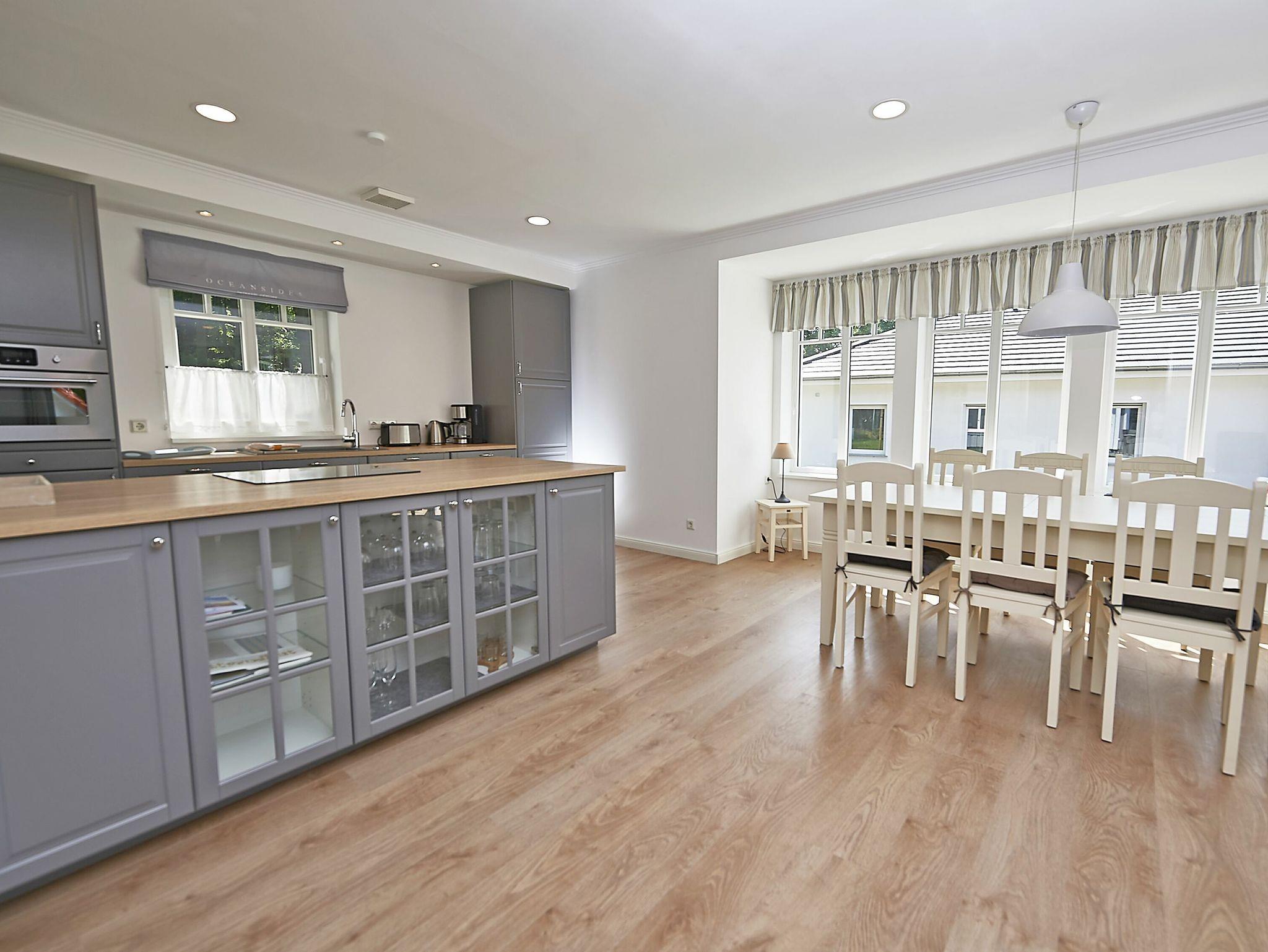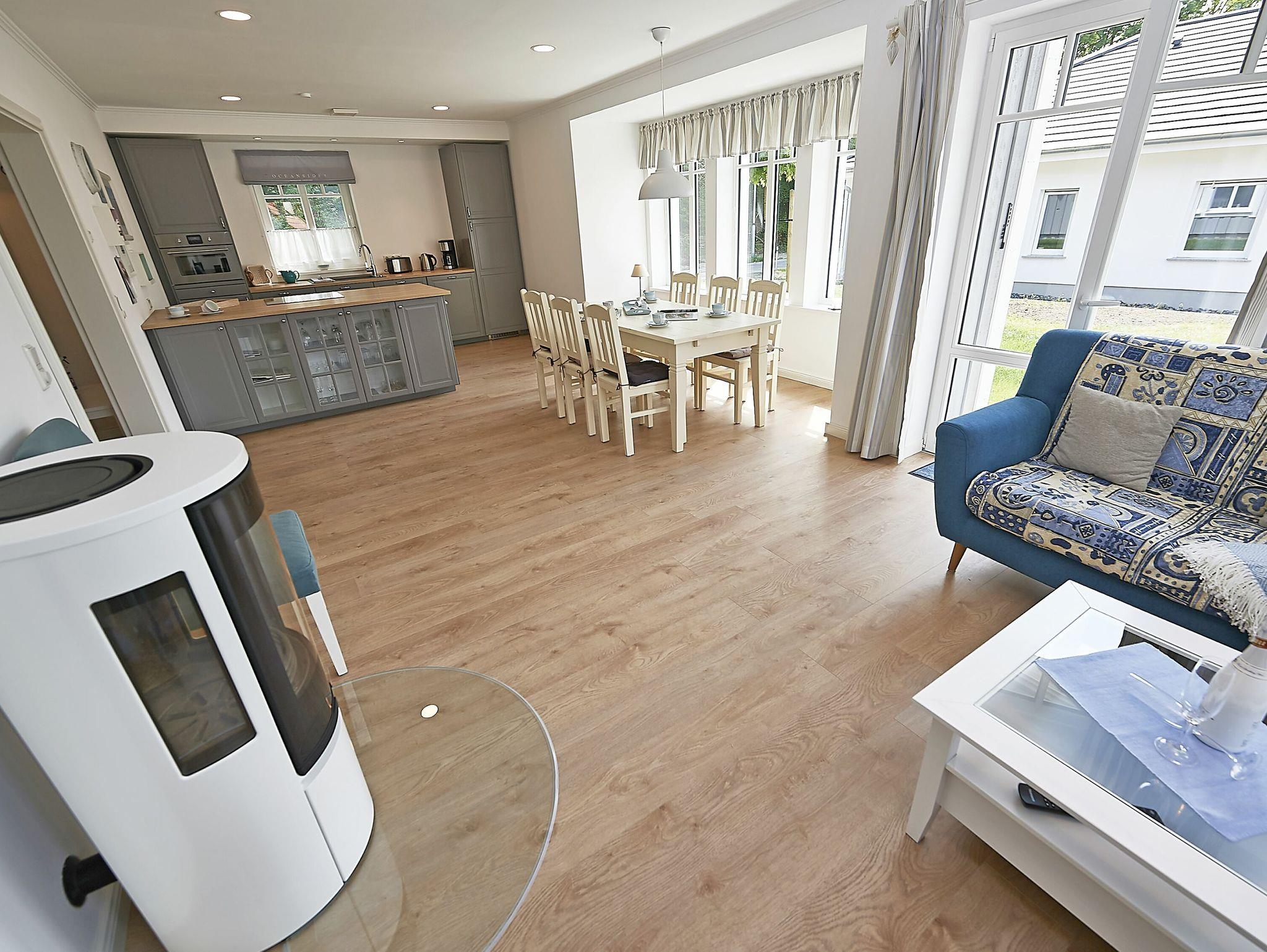 Die Wohnfläche beträgt mehr als 120 Quadratmeter und der großzügige Wohnraum, inklusive Küche und Essbereich garantiert einen entspannten Aufenthalt mit der Familie oder mit Freunden. Die Einrichtung besteht aus hochwertigen Möbeln im Landhausstil, die dazu passende Farbpalette findet sich vor allem in den Tönen weiß, grau, mauve und meerblau wieder.