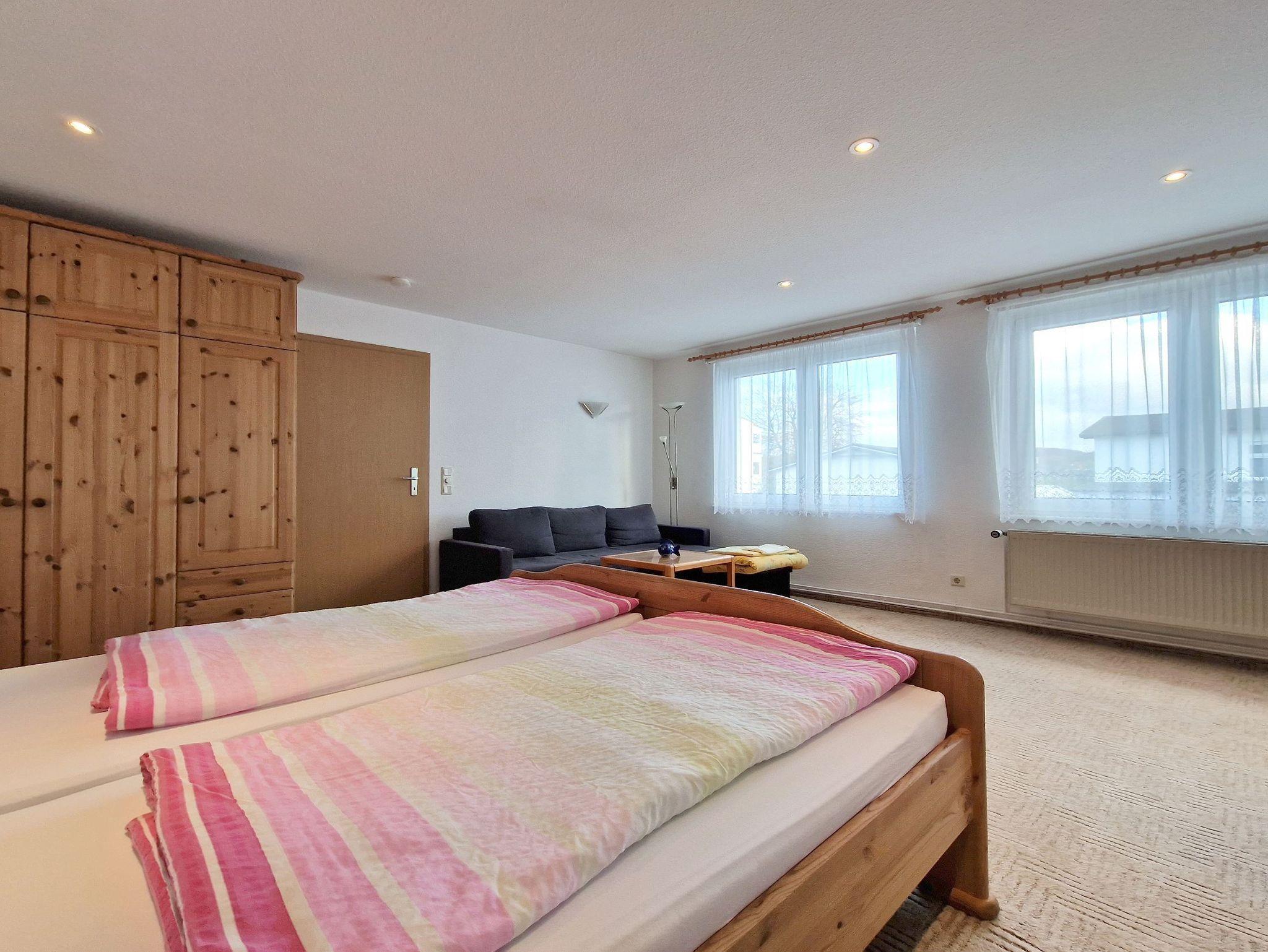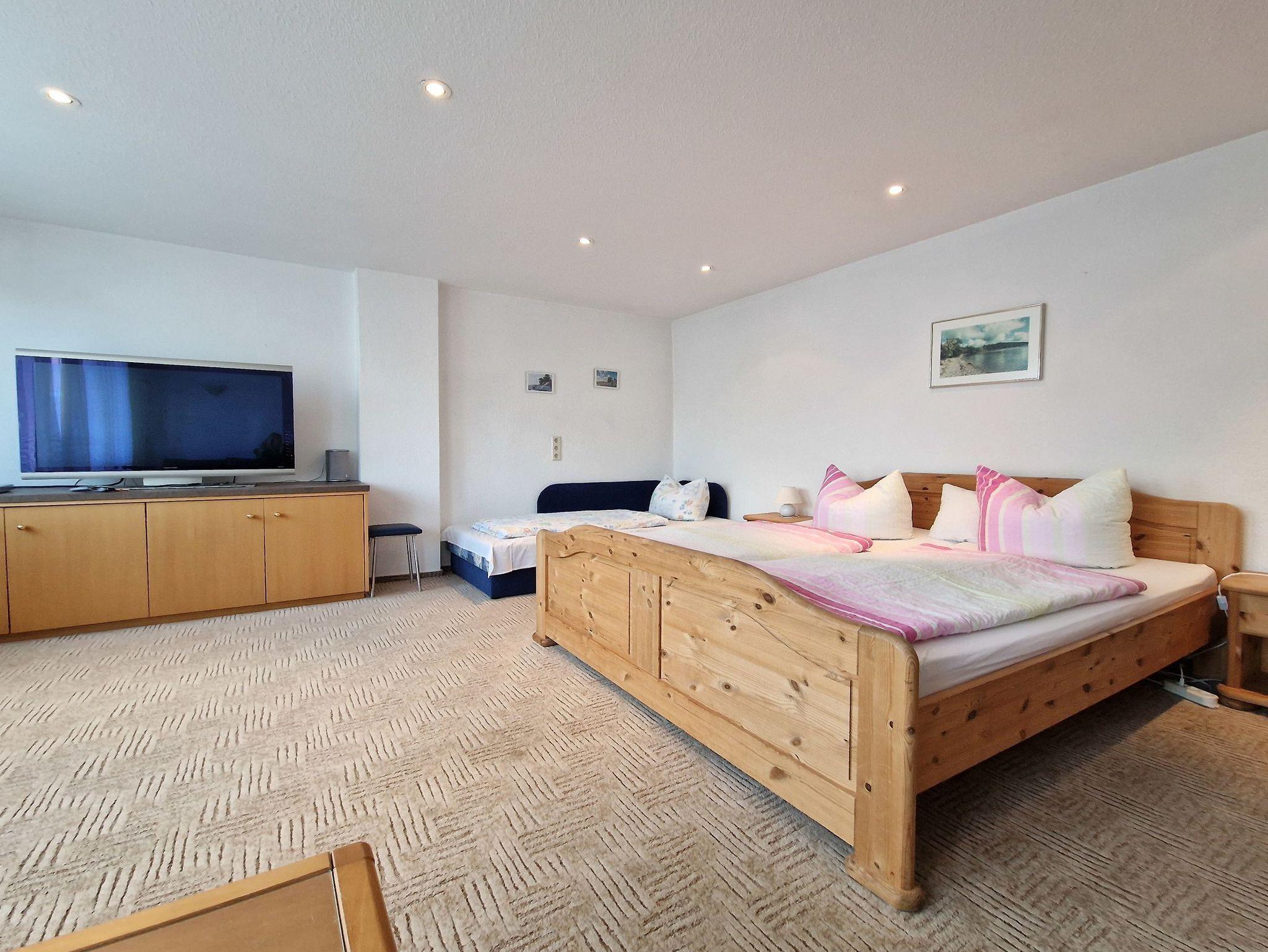• SCHLAFEN: Kombinierter Wohn/-Schlafraum mit einem Doppelbett, Schlafcouch und Flachbild TV (OG)