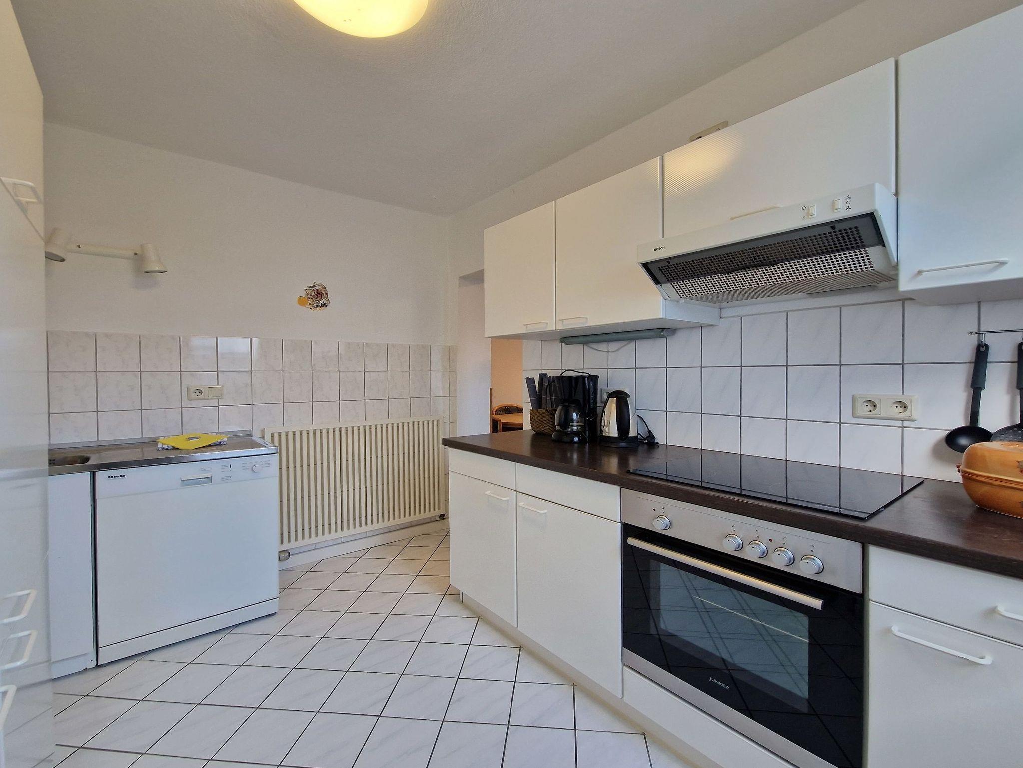 • KÜCHE: Separate Küche, 4-Felder Ceranherd, Kühlschrank, Spülmaschine, Mikrowelle, Wasserkocher, Kaffeemaschine, reichlich Besteck, Geschirr und Küchenutensilien