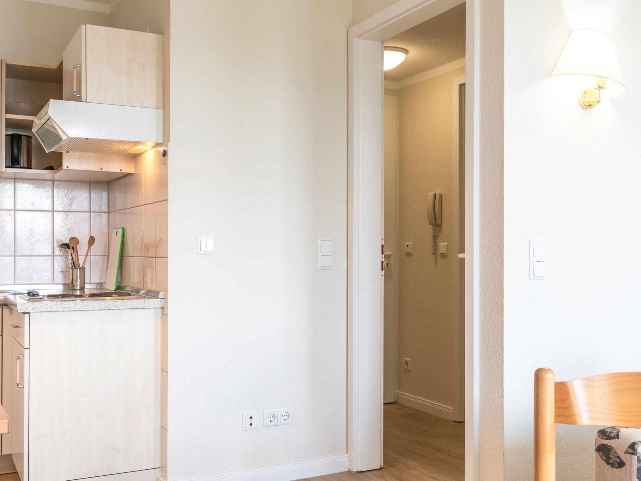 Die Ferienwohnung verfügt über kostenfreies WLAN und die Erstausstattung an Bettwäsche ist inklusive. Der kombinierte Wohn-/Schlafbereich mit Verdunklung verfügt über ein Doppelbett. Darüber hinaus verfügt die Ferienwohnung über ein Bad mit Dusche/WC und Föhn. Die voll ausgestattete Pantry mit Kaffeemaschine und Toaster lässt keine Wünsche offen. Ein Fernseher inkl. 3 Sky-Sender rundet die gute Einrichtung ab.