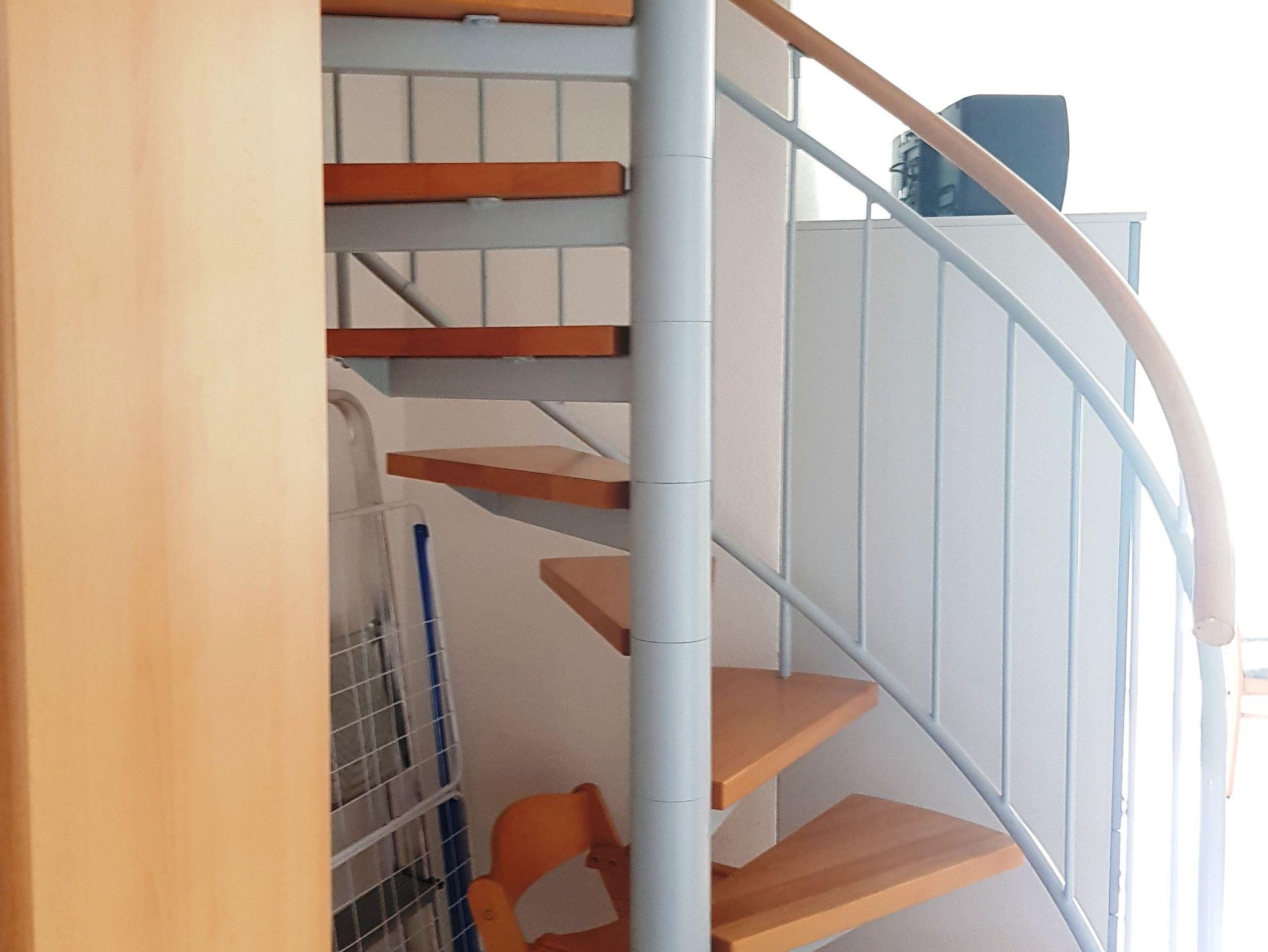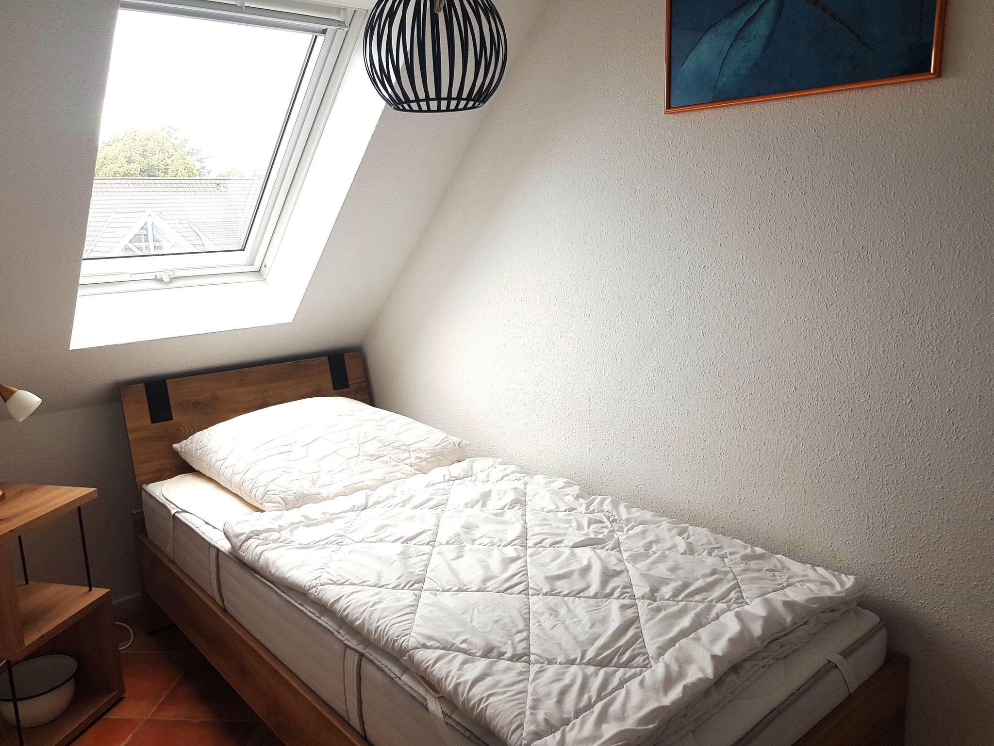 Die beiden Schlafzimmer befinden sich im Dachgeschoss, welches über eine Spartreppe erreichbar ist.