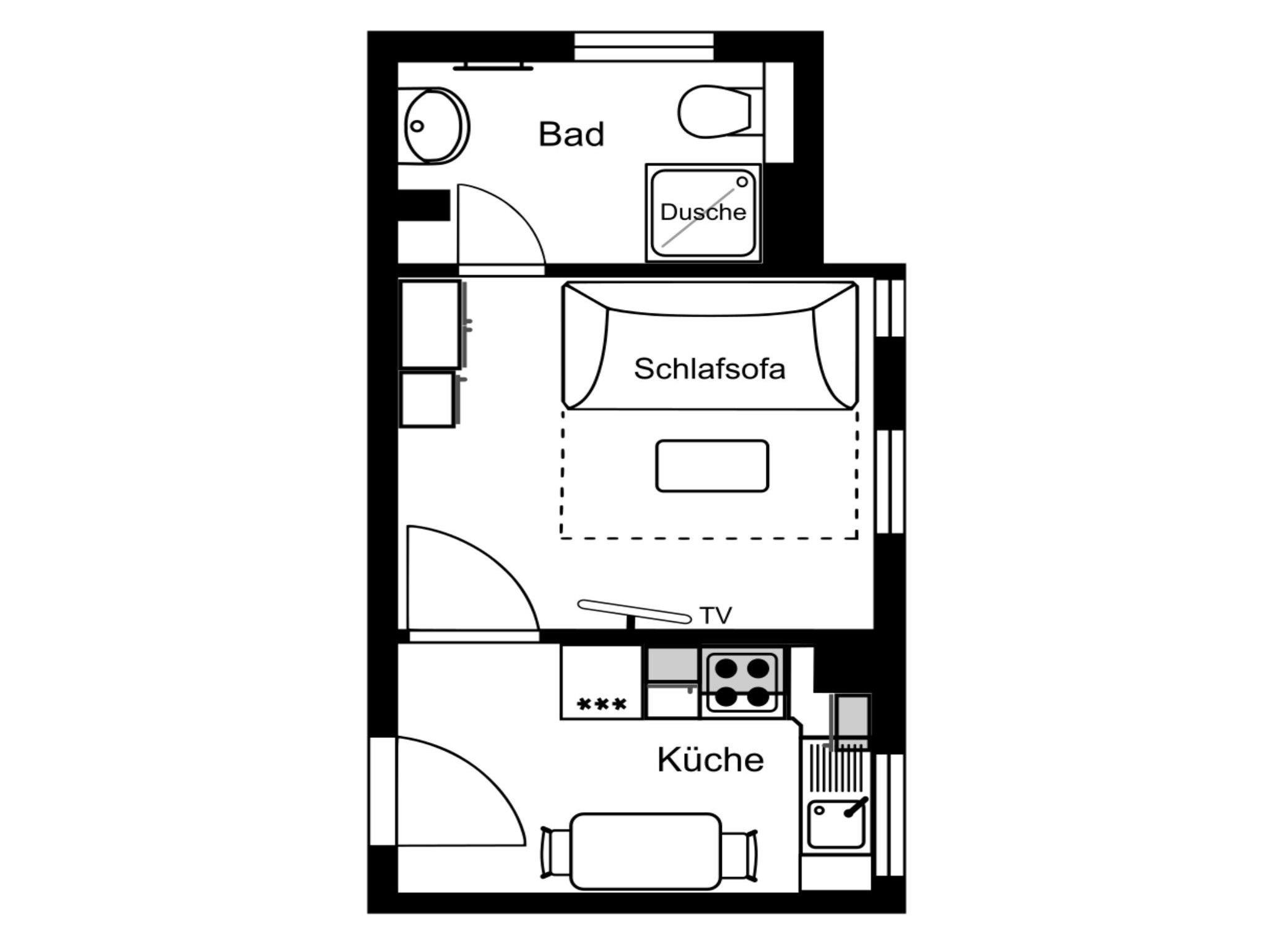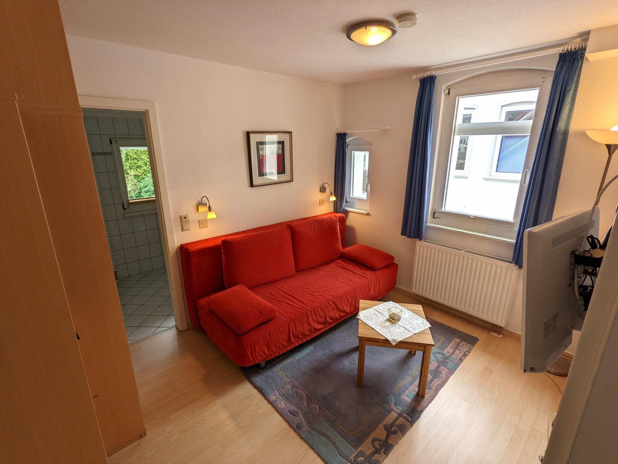 • kombiniertes Wohn-/Schlafzimmer mit Schlafcouch sowie Flachbild-TV