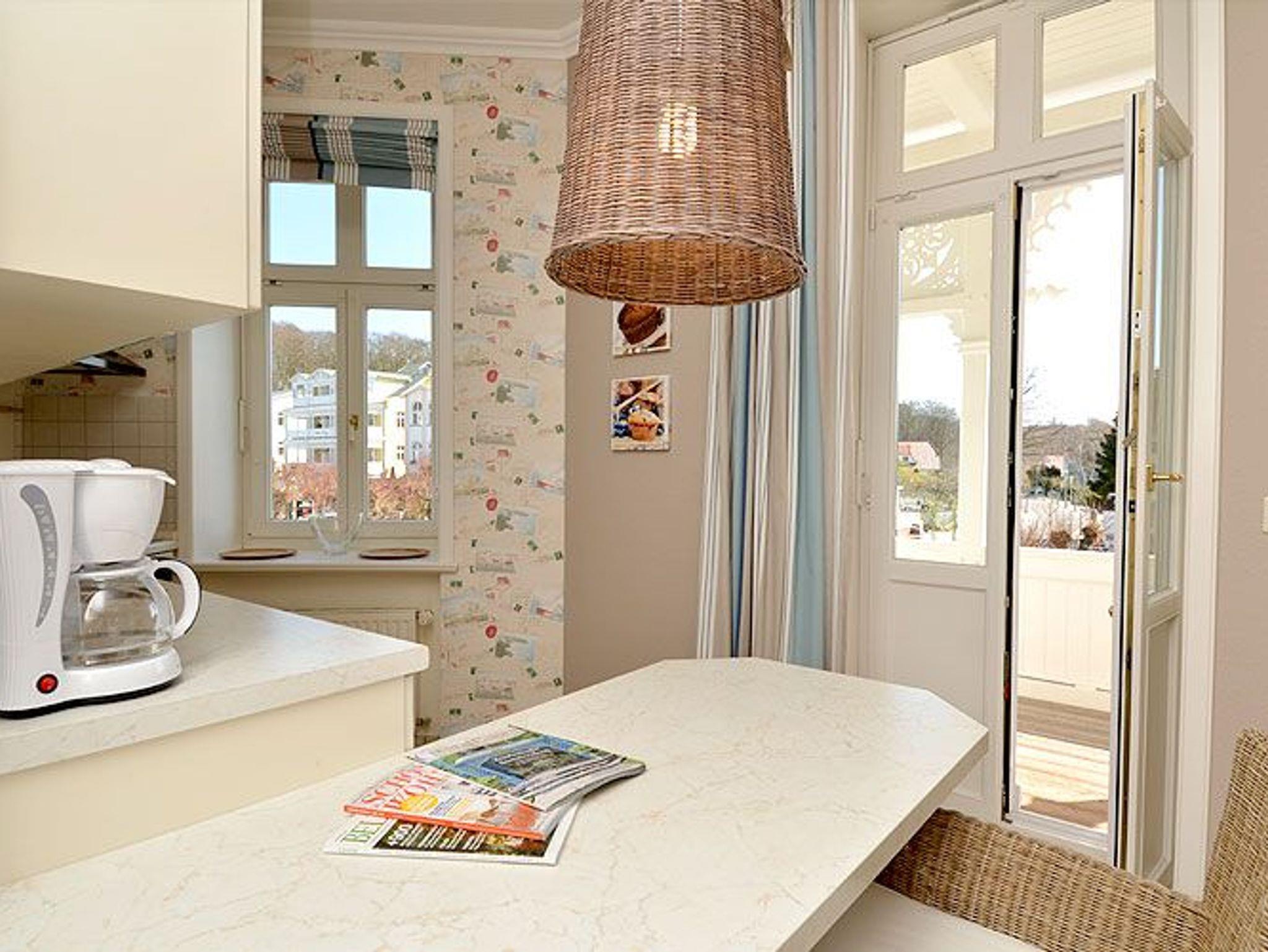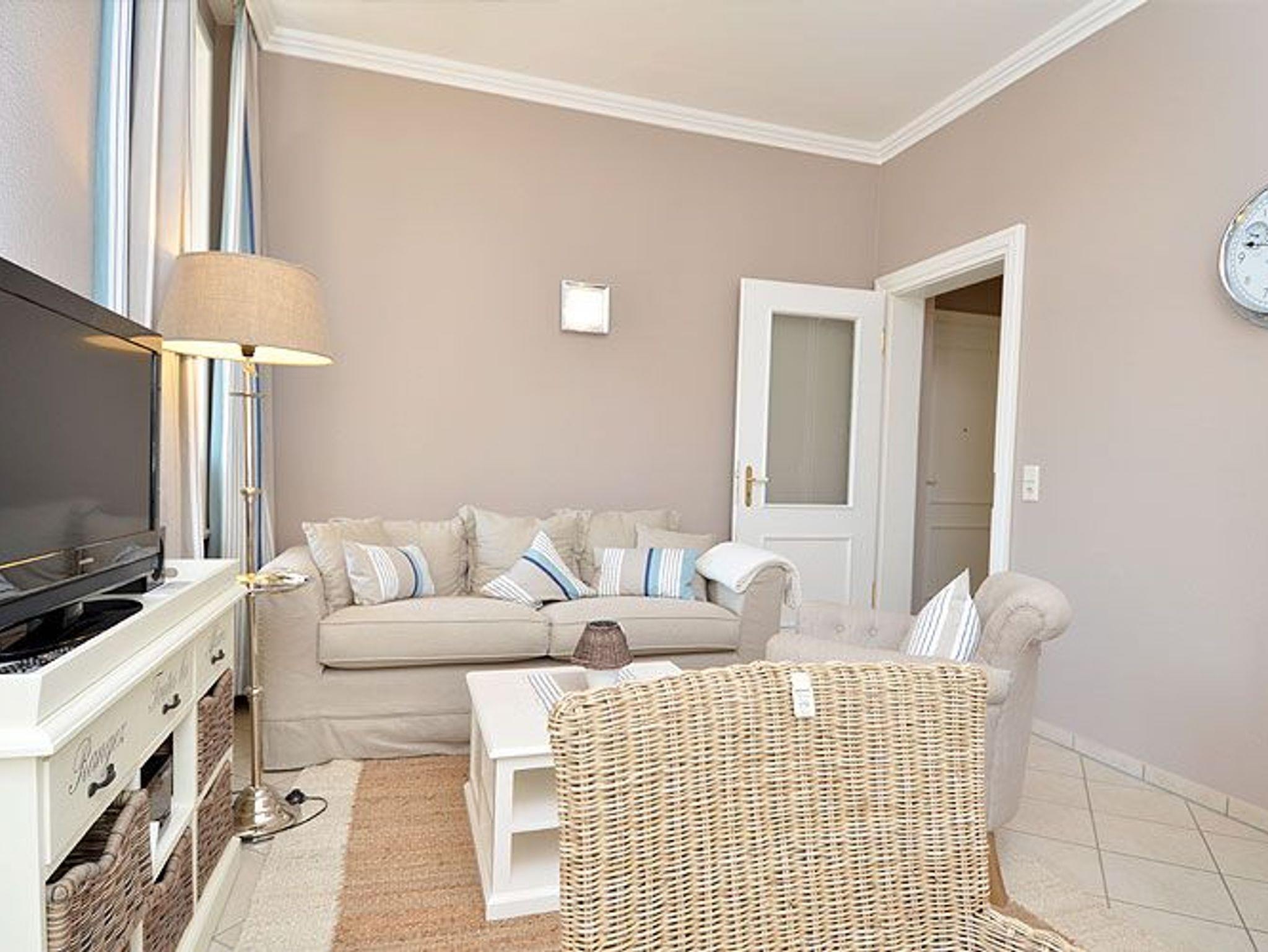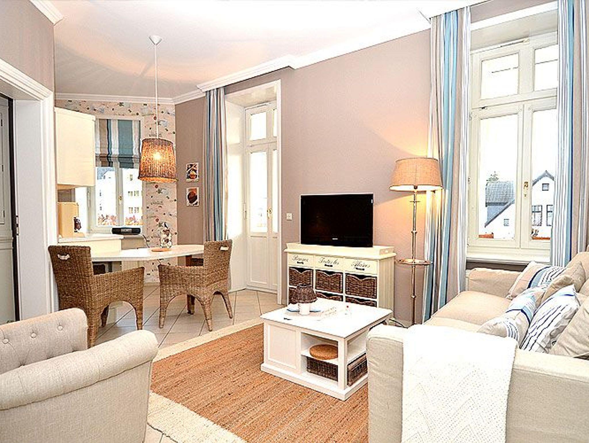 Dieses rund 40m² große und sehr stilvoll eingerichtete 2-Raum-Appartement erwartet Sie im 1. Obergeschoss und bezaubert u.a. mit seinem gut 11m² großen, möblierten Holzbalkon im Bäderstil zur Morgensonne mit Blick auf die wunderschöne Wilhelmstrasse. Die wunderschönen Landhausmöbel, ausgesuchte Stoffe und die warmen Erdtöne schaffen mit den leicht maritimen Akzenten ein ganz einzigartiges Wohlfühlambiente. Die gesamte Nichtraucherwohnung ist gefliest bzw. mit Designerboden in Vintage-Oak-Optik versehen.