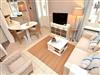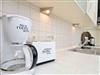 Die harmonisch im Wohnbereich integrierte Küchenzeile ist ausgestattet mit einem Kühlschrank mit Gefrierfach, einem 4-Platten-Ceranfeld, einer Spülmaschine, einer Mikrowelle mit Grillfunktion und diversem Kleininventar, das die Küchenausstattung komplettiert.